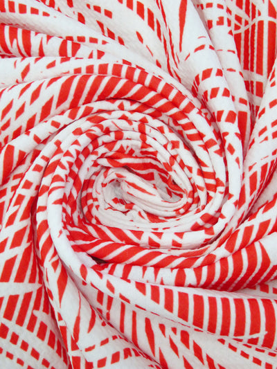 Salmon/Brick Red/Grass Green/Multi 100% Rayon Abstract Stripe Design Print Crinkle Challis 50W