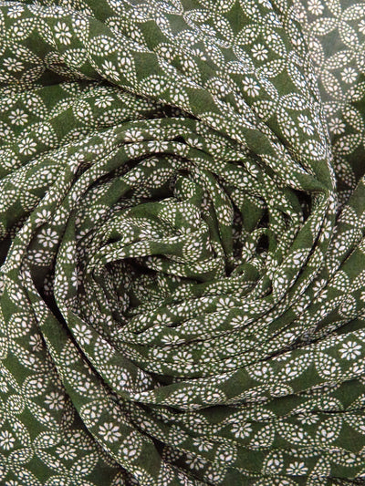 Army Green/Cream Polyester/Lycra Small Floral Medallion Print Stretch Georgette 56W