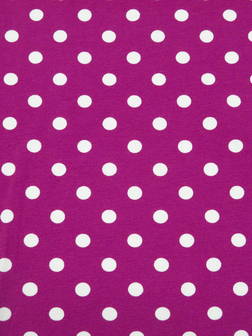 Bright Orchid/White Cotton/Lycra Polka Dot Print Jersey Knit 62W