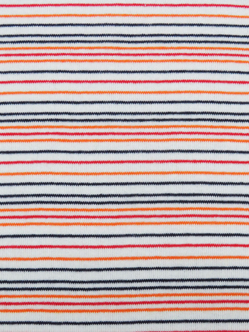 White/Navy/Carrot/Red Recycled Cotton/Recycled Polyester/Polyester Horizontal Stripe Fine Rib Knit - Michael Stars - 60W