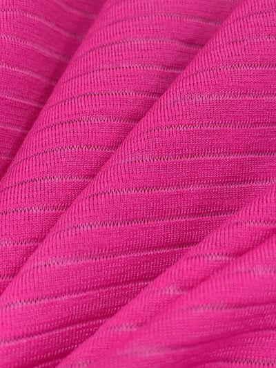 Royal Pink Recycled Polyester/Polyester/Elastane Horizontal Stripe Weave Base Layer Activewear Knit - Corbeaux Clothing - 58W