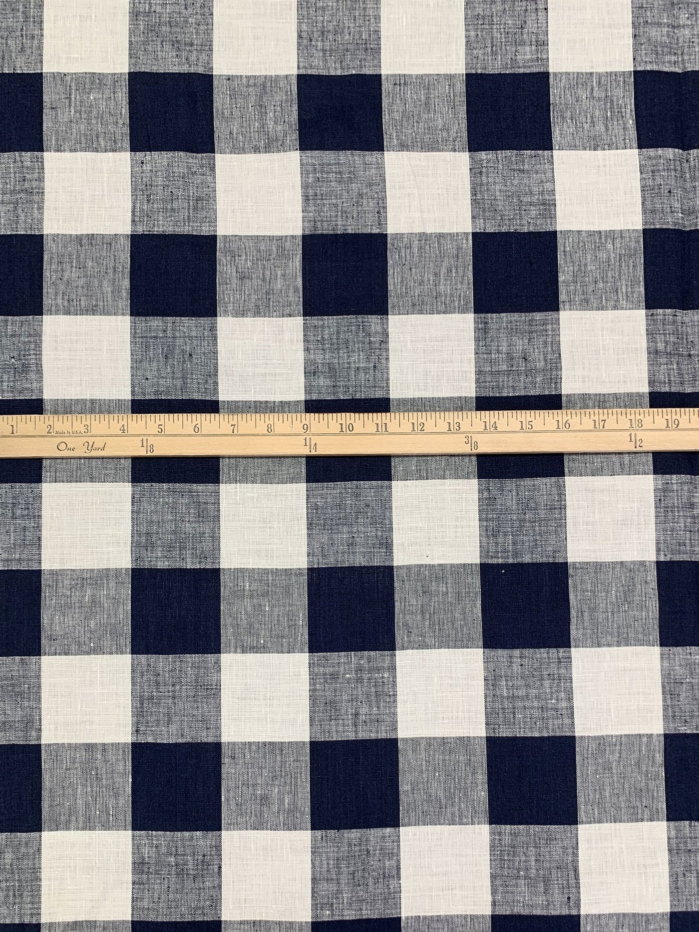 Navy/Eggshell 100% Linen Cross-Dyed Large Gingham Shirt-Weight Woven - European Mill - 59W