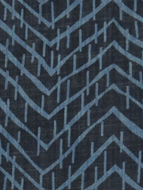 Indigo Blue/Ink Tencel/Cotton Blend Large Zig Zag Print Chambray - LA Designer - 60W