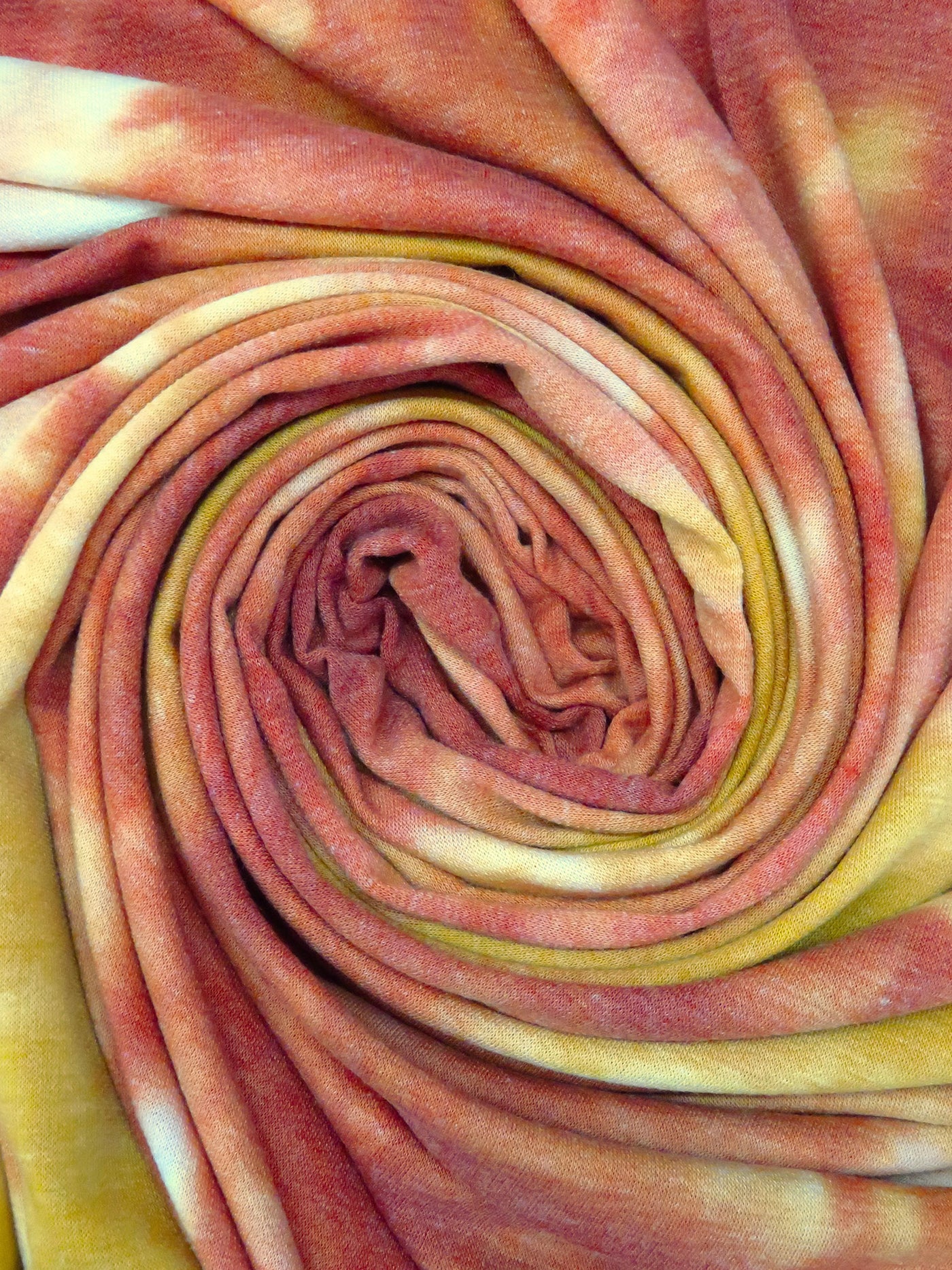 Deep Chestnut/Goldenrod/White/Multi Polyester/Rayon/Lycra Tie-Dye Print French Terry Knit - Robert Kaufman - 58W