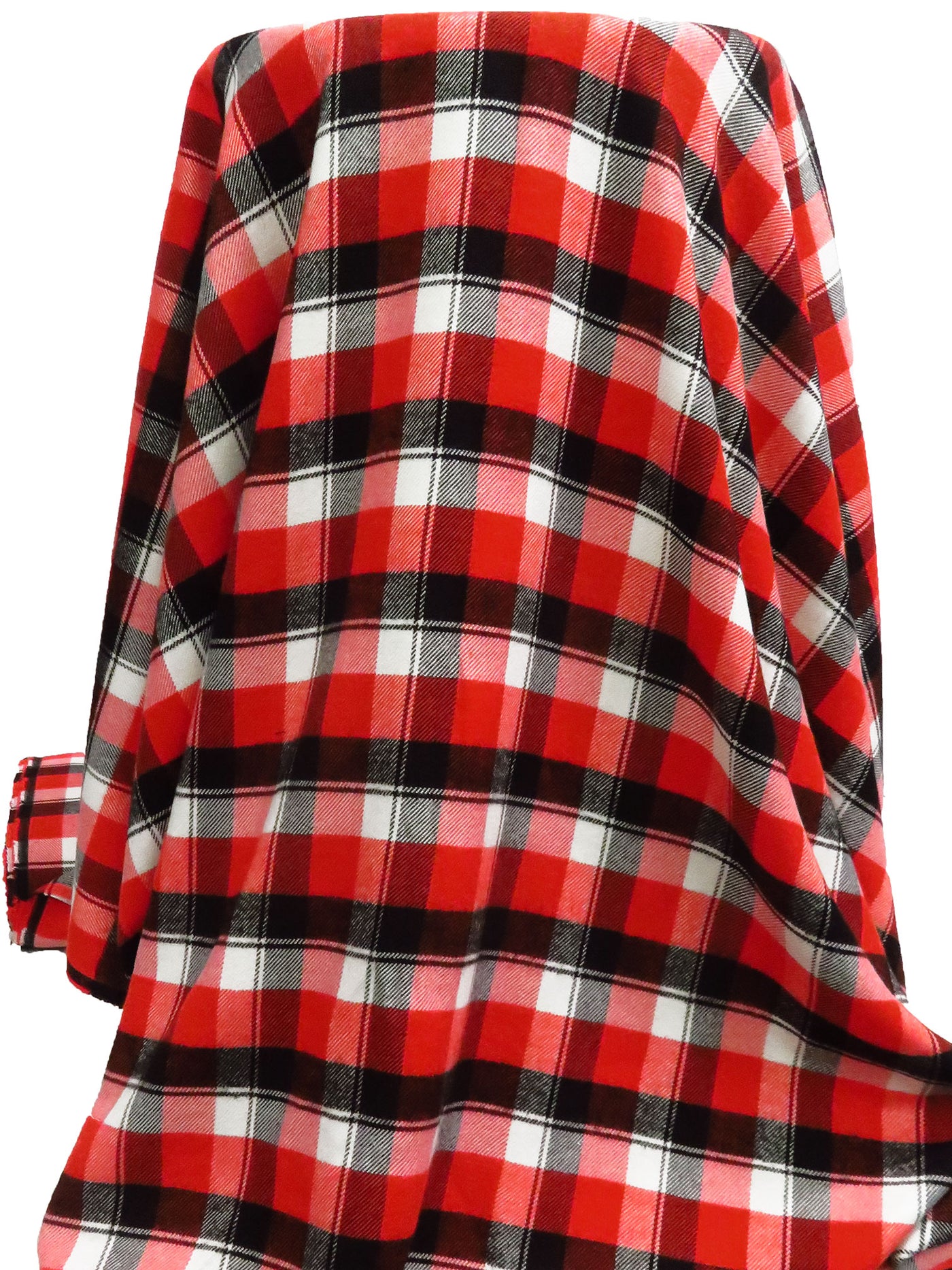 Vermillion Red/Black/White Recycled Polyester/Polyester/Rayon Seawool Plaid Weave Flannel Suiting - Robert Kaufman - 51W