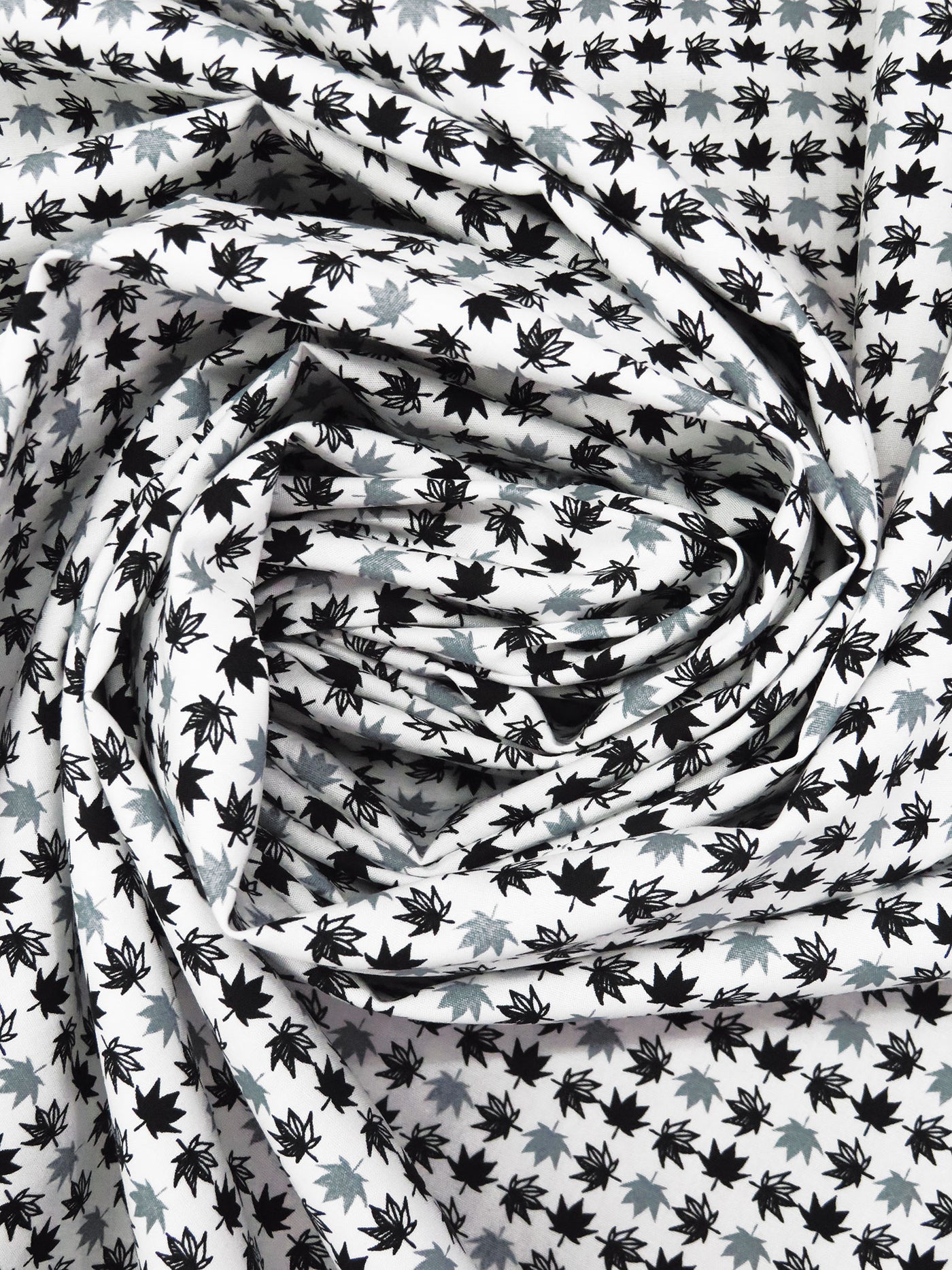 White/Black/Cadet Gray 100% Cotton Maple Leaf Print Poplin Shirting - Robert Kaufman - 58W