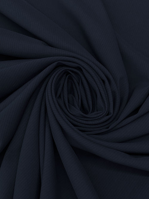Dark Navy Polyester/Recycled Seawool Vertical Stripe Performance Shirt Weight Woven - Robert Kaufman - 55W