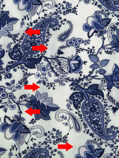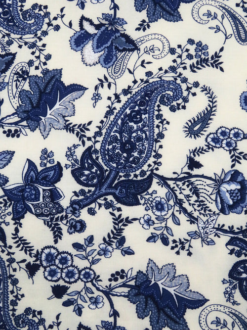 SOLD AS IS ONLY - Dark Navy/White/Dark Cornflower/Multi 100% Rayon Floral Paisley Print Challis 43W