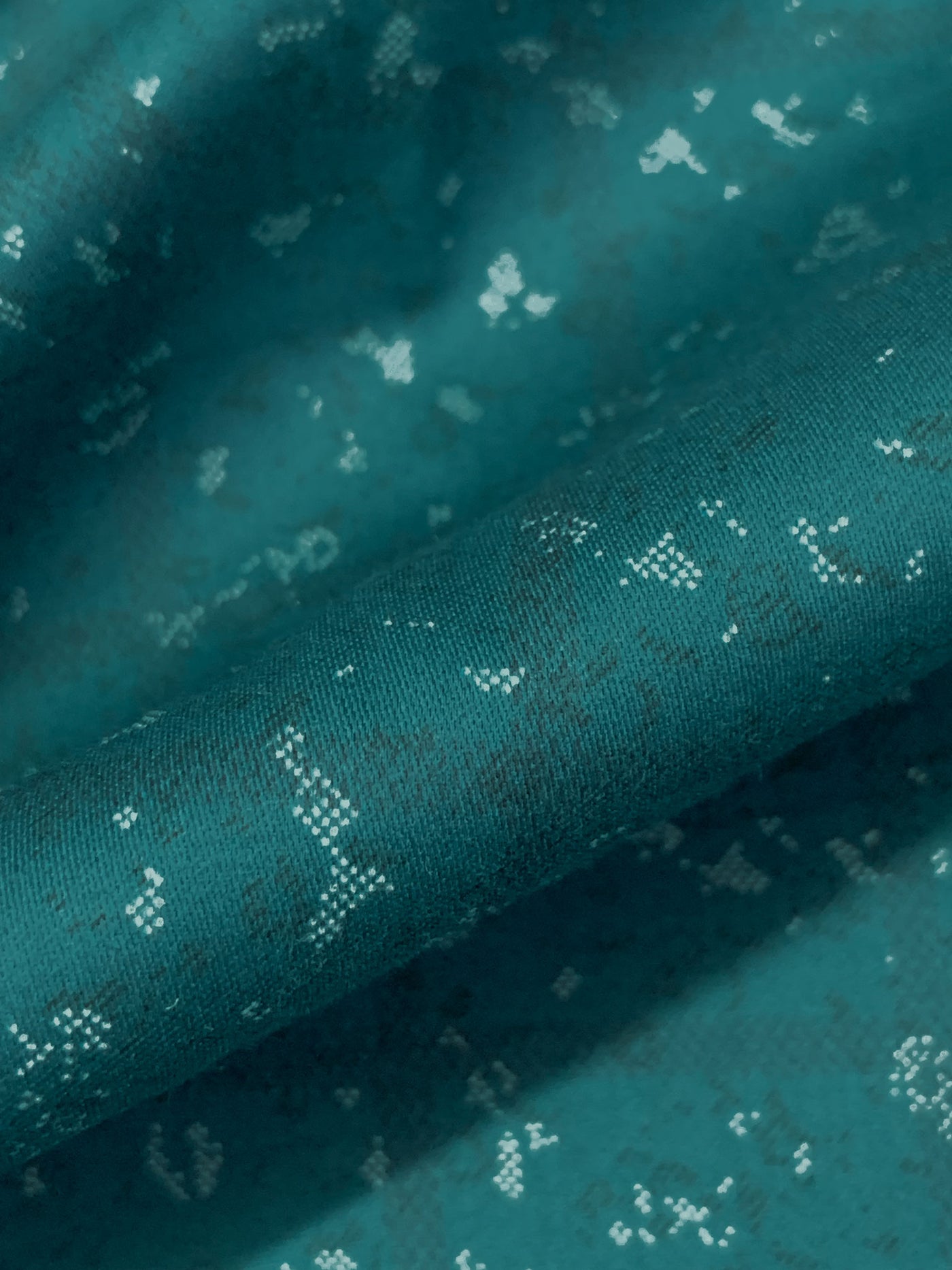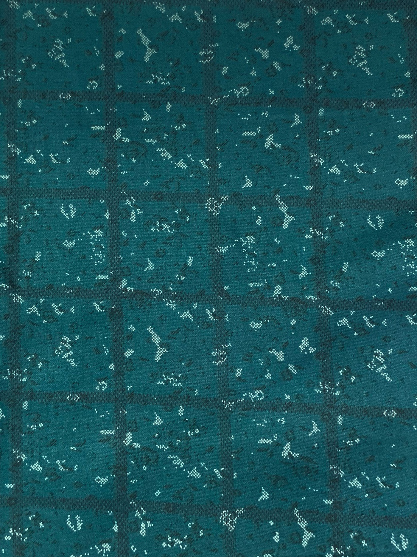 SOLD AS IS ONLY - Deep Teal/Off-White 100% Cotton Distorted Grid Print Sateen Shirting 56W