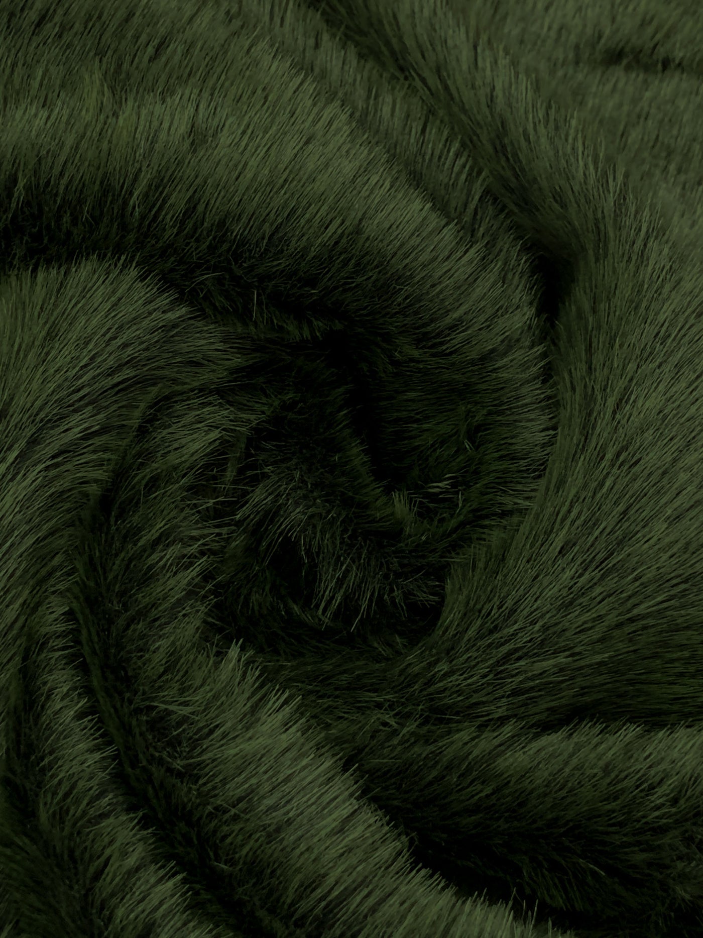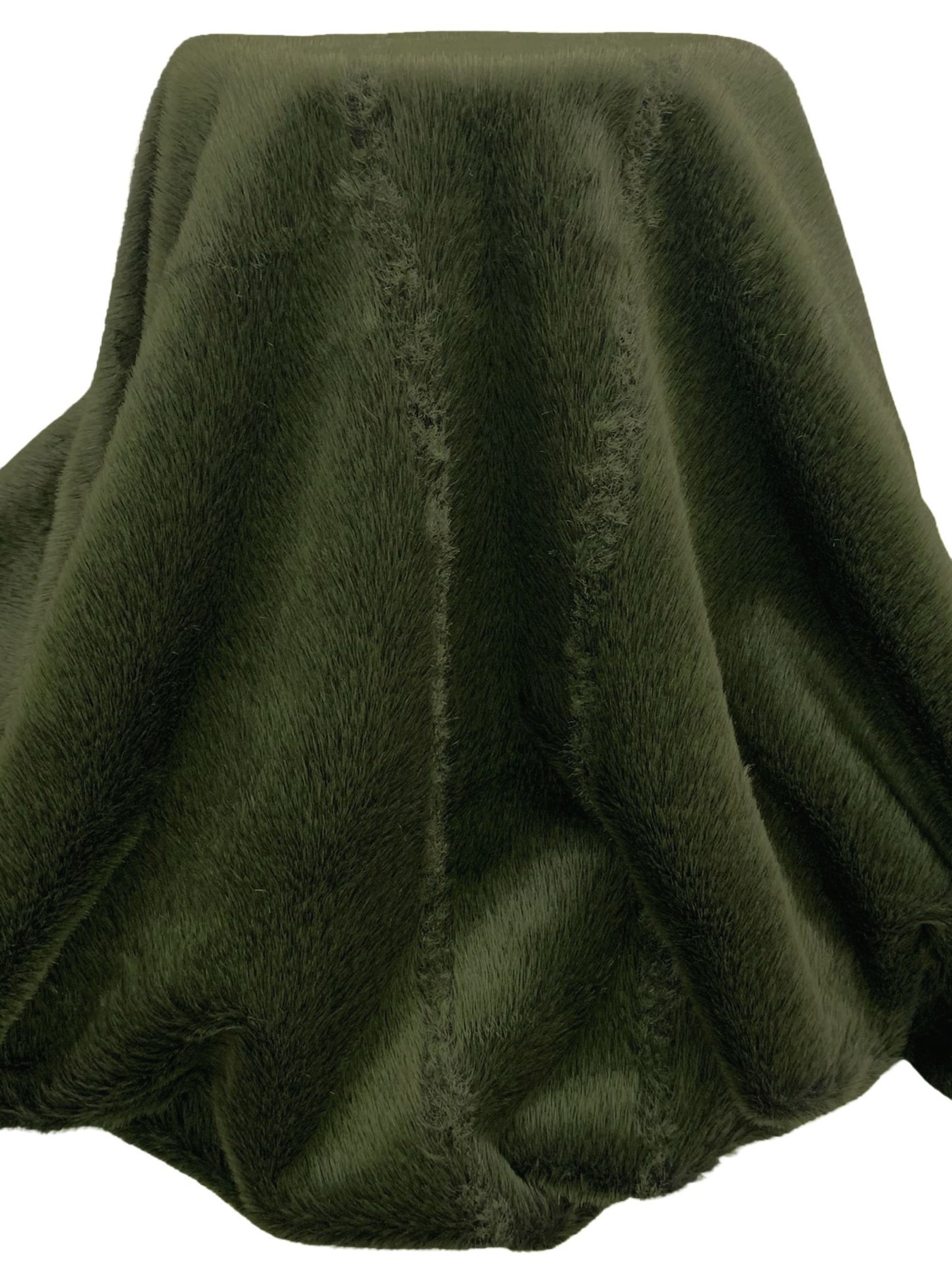 SOLD AS IS ONLY - Dark Moss Green 100% Polyester Faux Fur - NY Designer - 63W