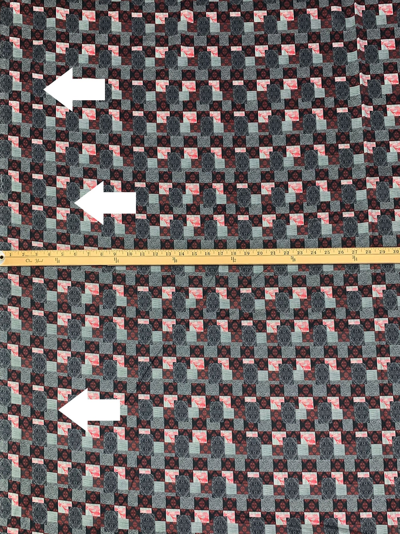 - Pattern Repeat: Multi Patchwork Print 2.5" Vertical 8" Horizontal Repeat