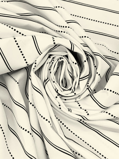 Ivory/Black 100% Polyester Horizontal Woven Stripe Shirting - NY Designer - 62W