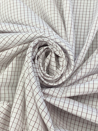 Baked Plum/White Cotton/Polyester Small Windowpane Plaid Shirting 58W