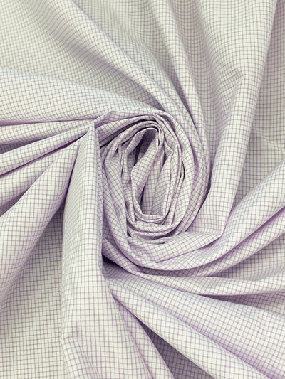 Lilac/White Cotton/Polyester Mini Windowpane Plaid Shirting 58W