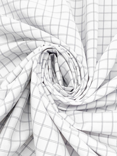 White/Cadet Gray Cotton/Polyester Windowpane Plaid Shirting 58W