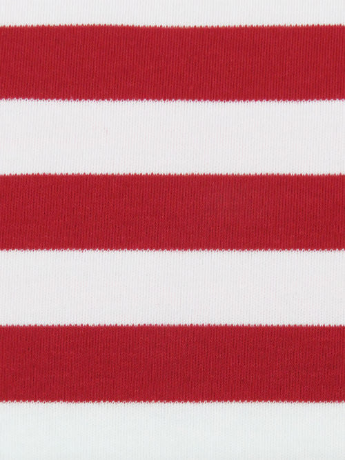 SOLD AS IS ONLY - Cherry Red/Palest Ballet Pink/White Cotton/Polyester Horizontal Stripe Interlock Knit 60W