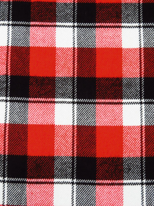 Fire Engine Red/Black 100% Cotton Check Plaid Weave Brushed Shirting - NY Designer - 56W