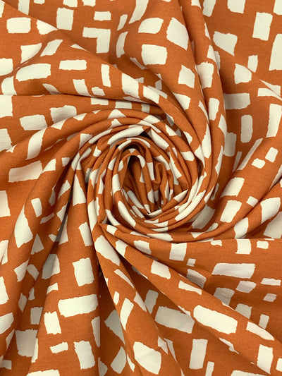 Burnt Orange/Off-White Rayon/Nylon Abstract Block Print Shirting 56W
