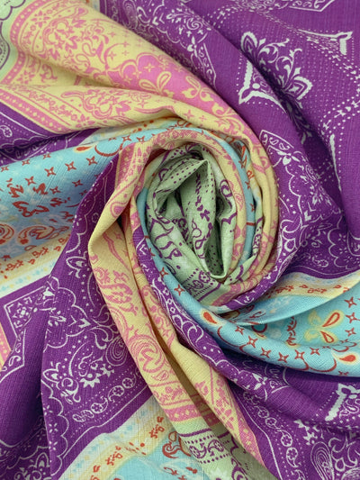 Plum/Pale Goldenrod/Light Blue/Multi Rayon/Nylon Ornate Diamond Print Slubbed-Look Shirting 56W