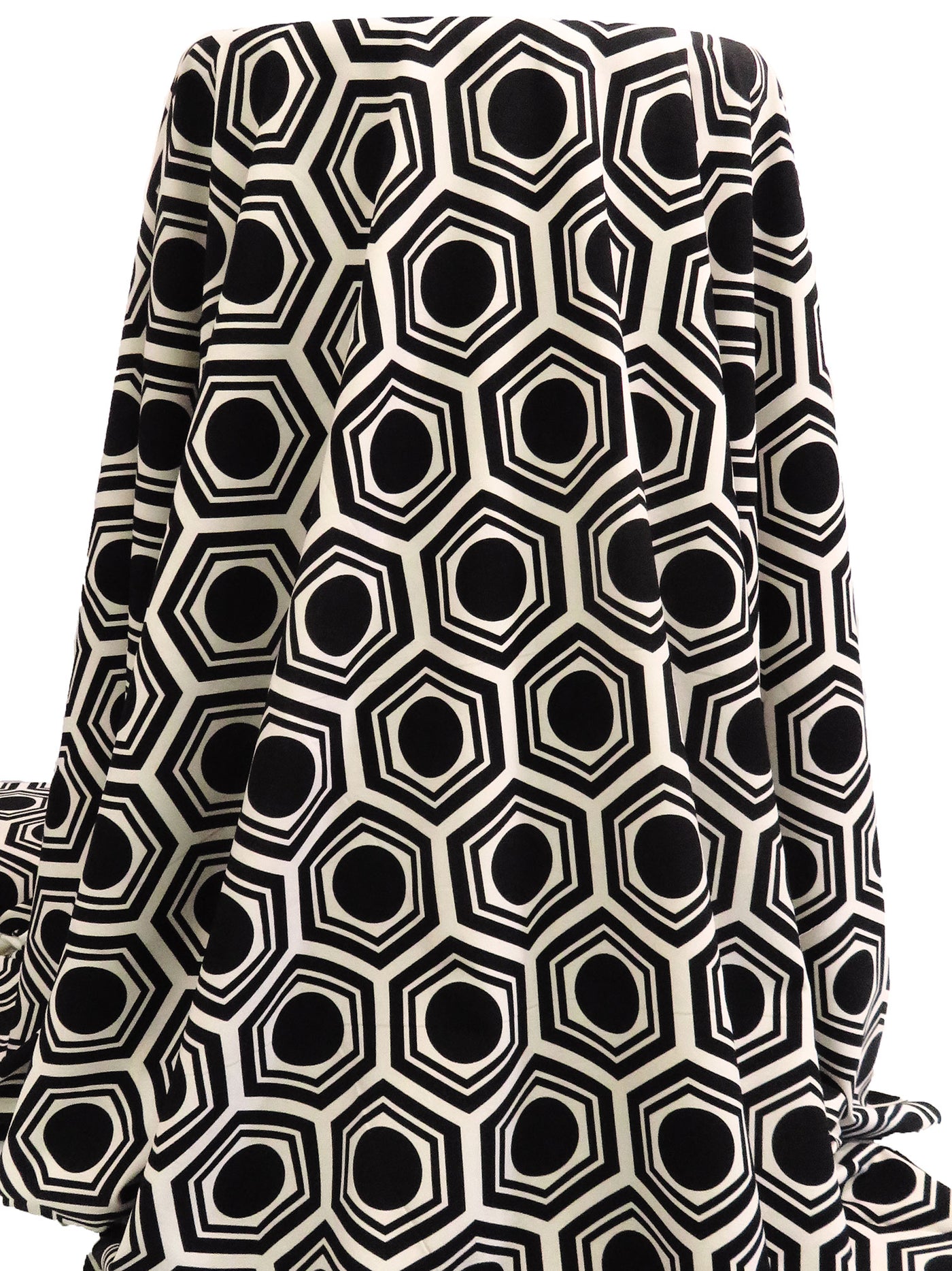 Black/Almond Polyester/Lycra Circle In Hexagon Print Crepe Stretch Bouse Weight Woven 60W