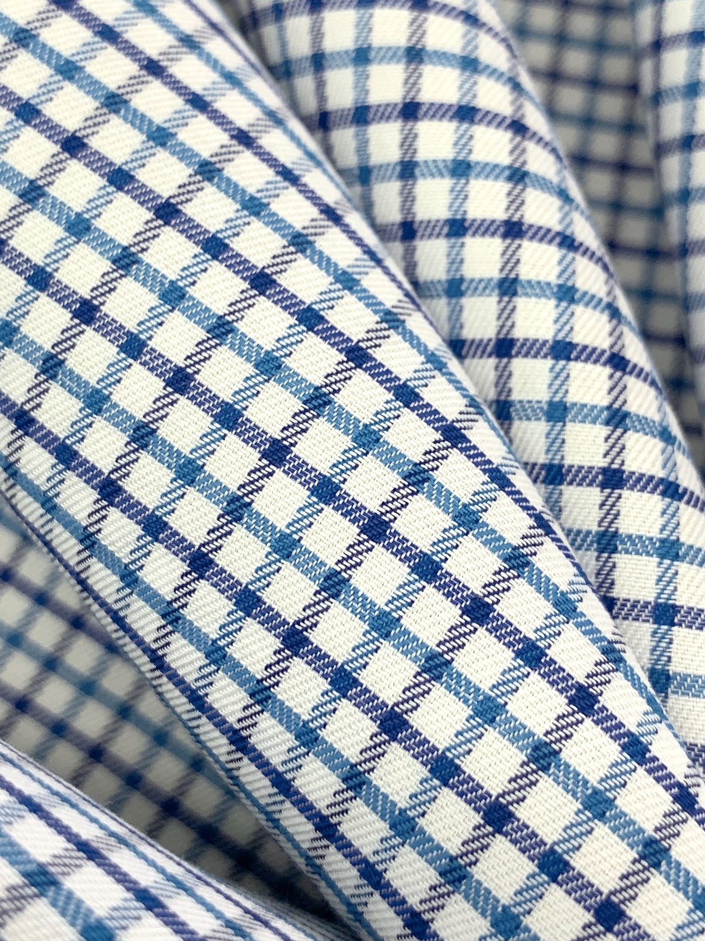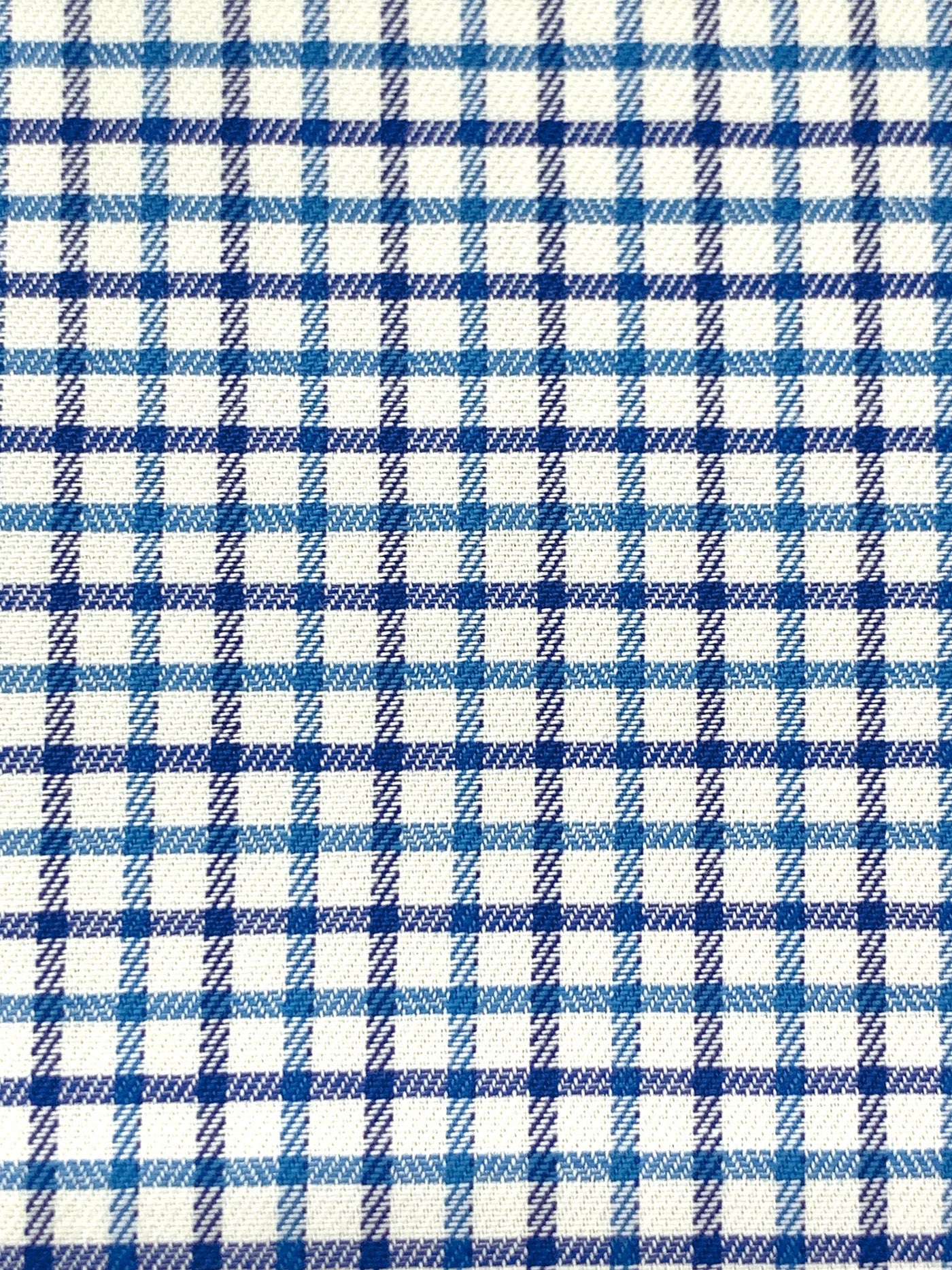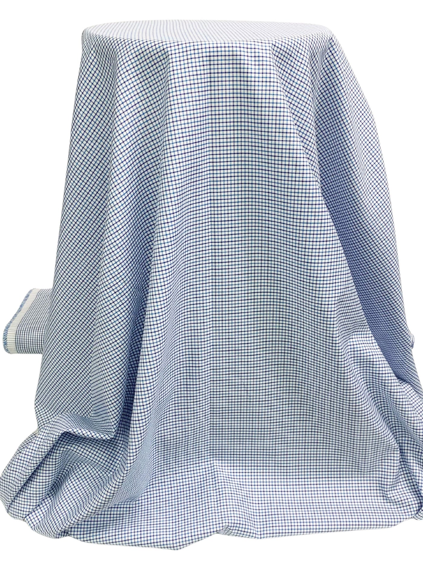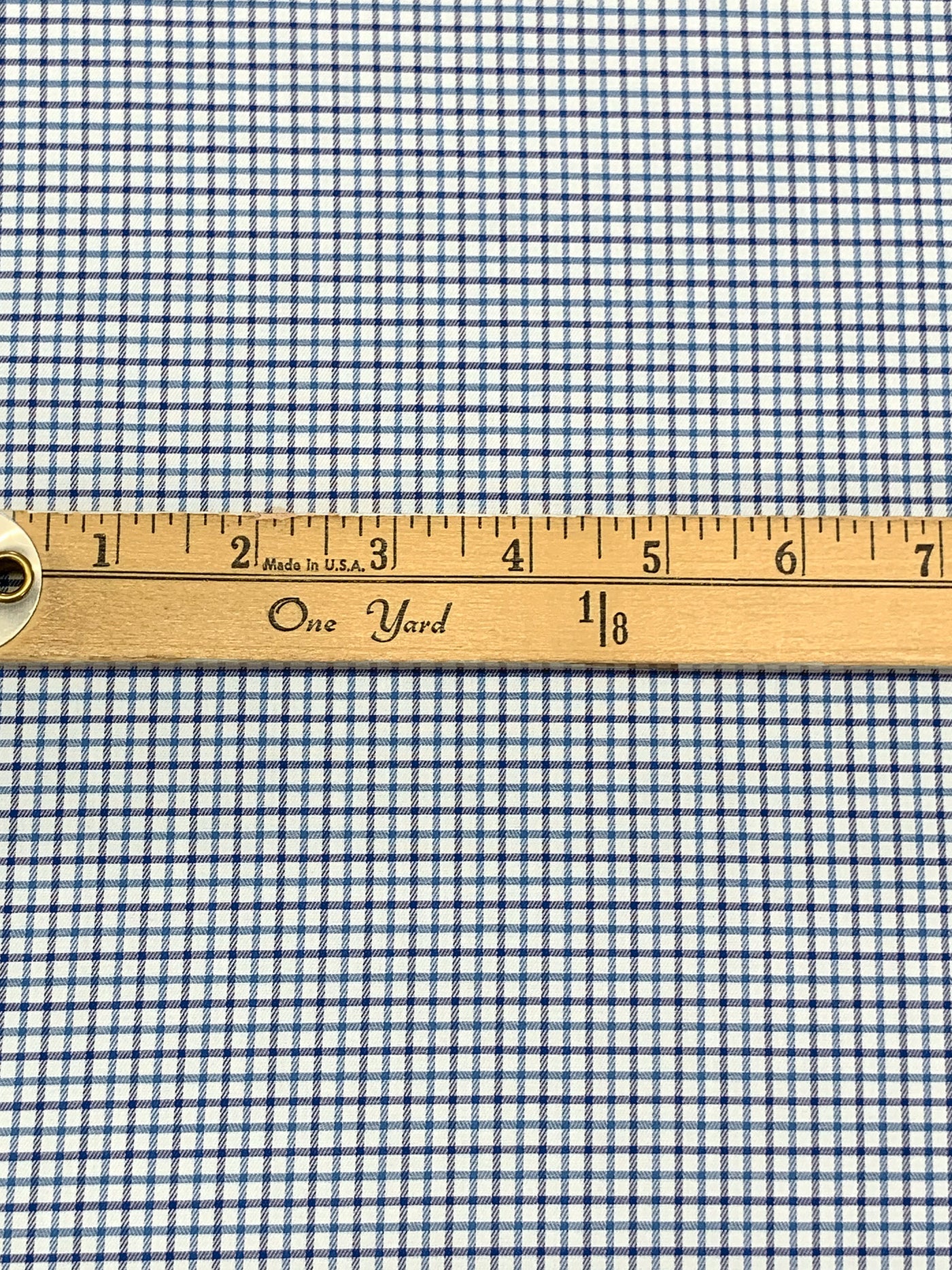 Dark Lapis Blue/White/Shadow Blue 100% Cotton Small Windowpane Plaid Weave Shirting 56W