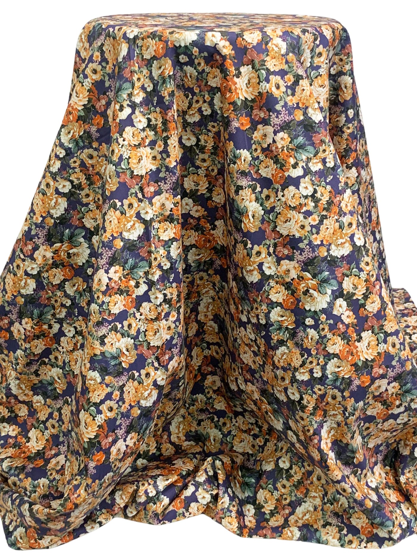 Independence Blue/Deep Carrot/Off-White/Multi 100% Cotton Floral Print Sateen Shirting 58W