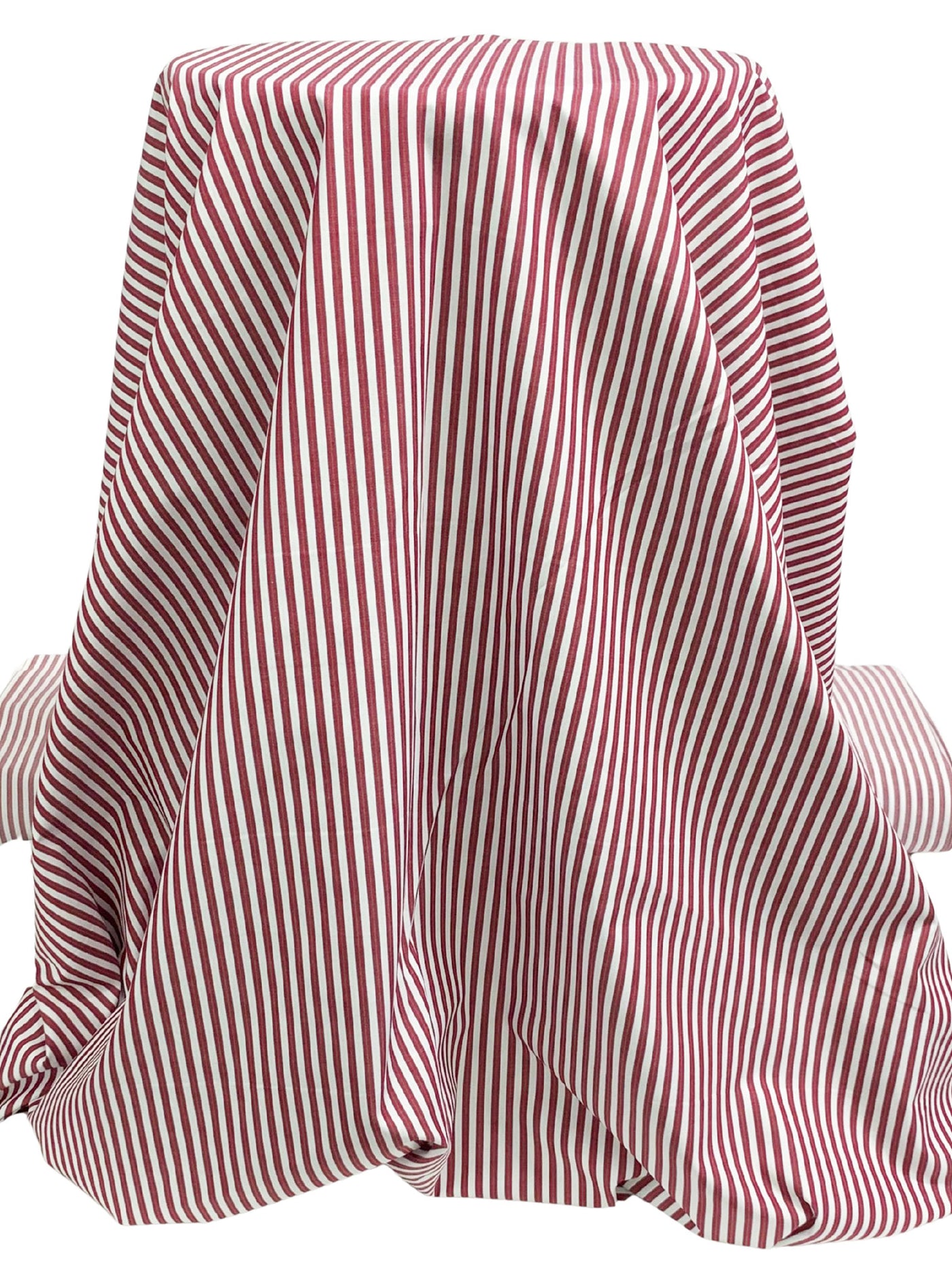 Maroon/White/Baby Pink/Dark Navy 100% Cotton Vertical Stripe Weave Shirting 58W