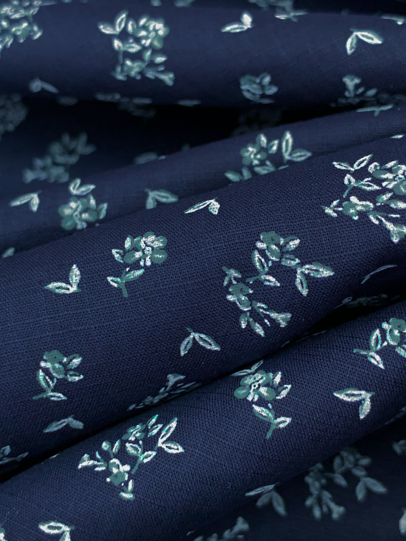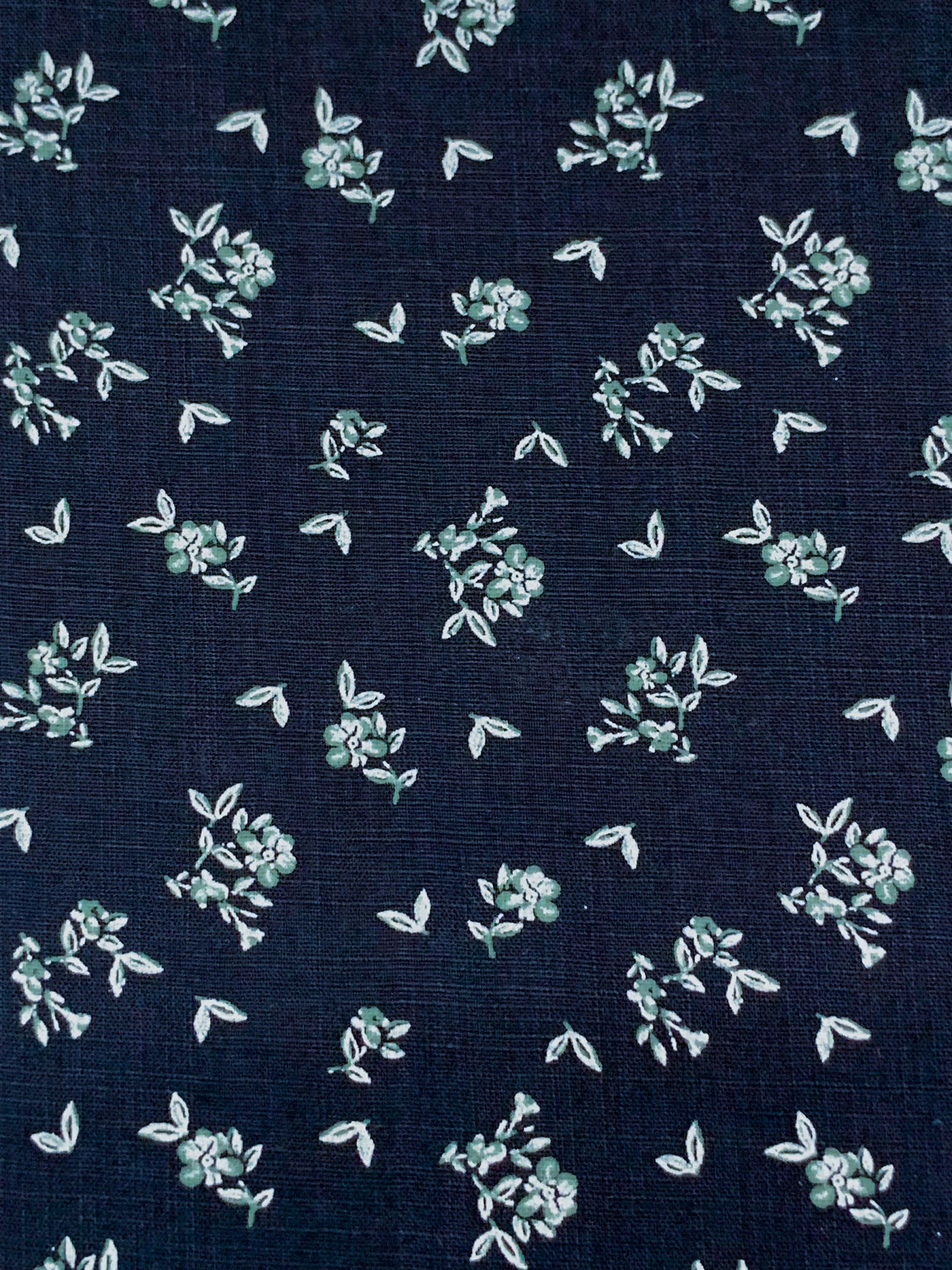 Navy/White/Teal Blue 100% Cotton Floral Print Crosshatch Weave Shirting 57W