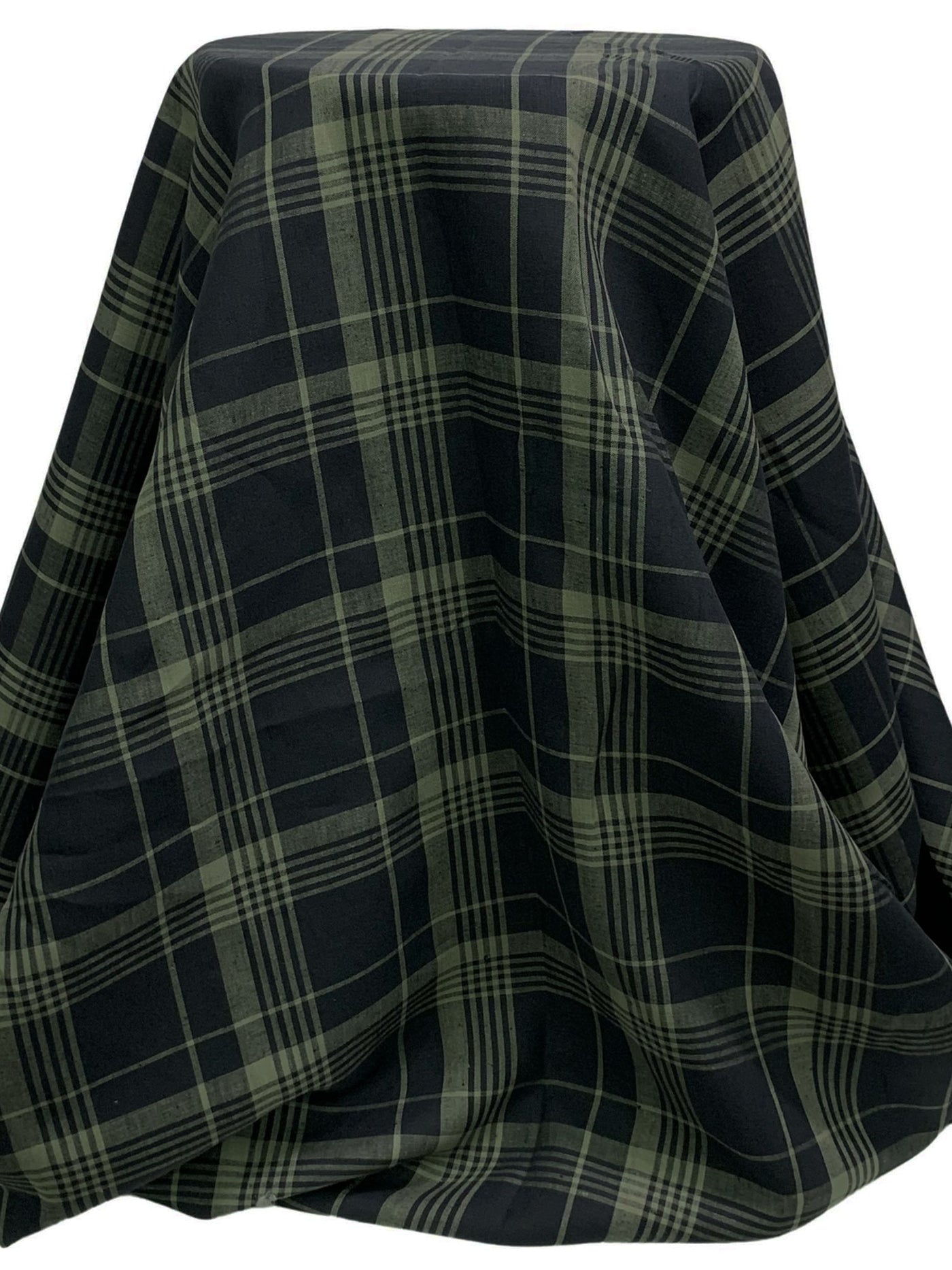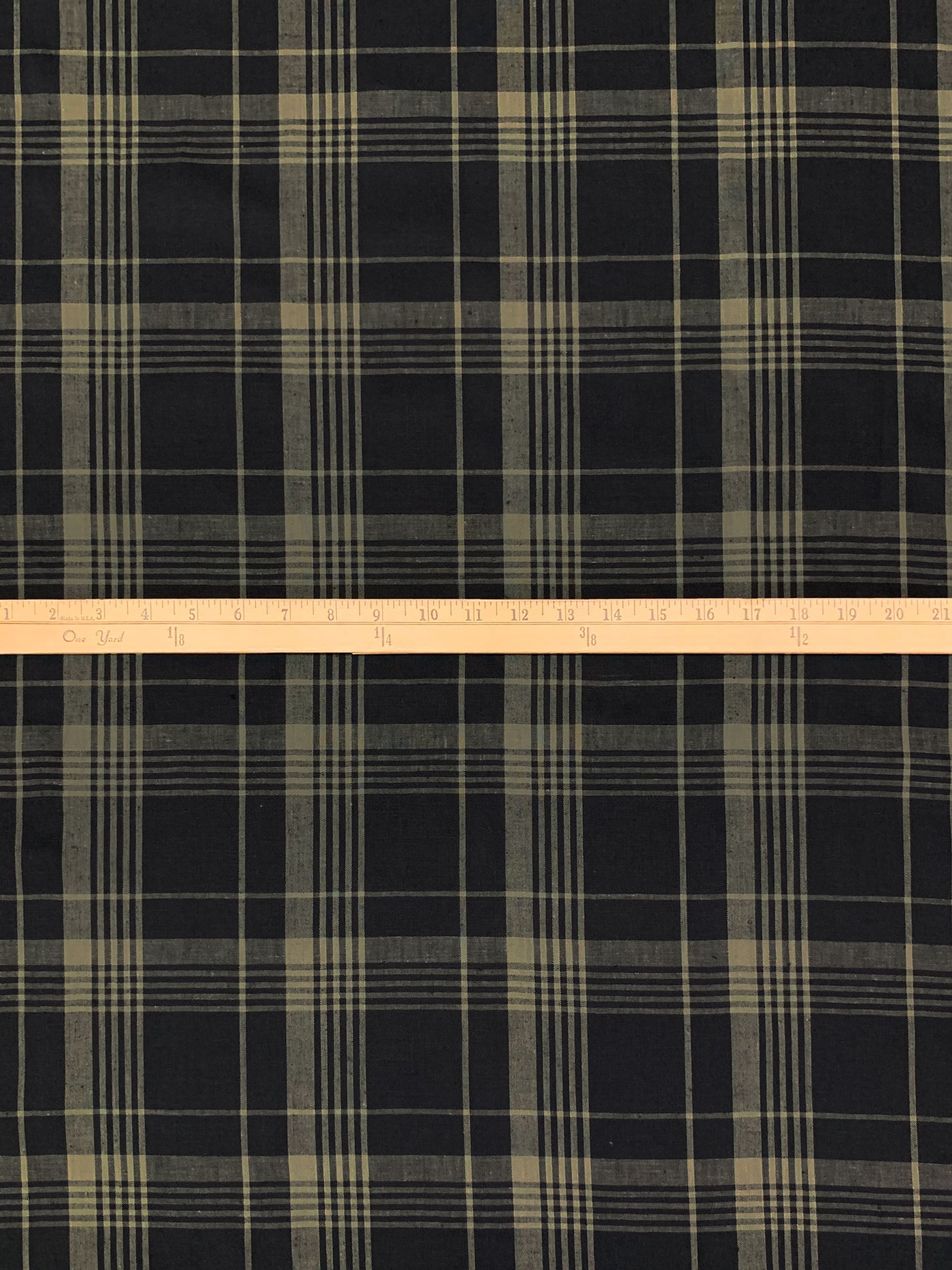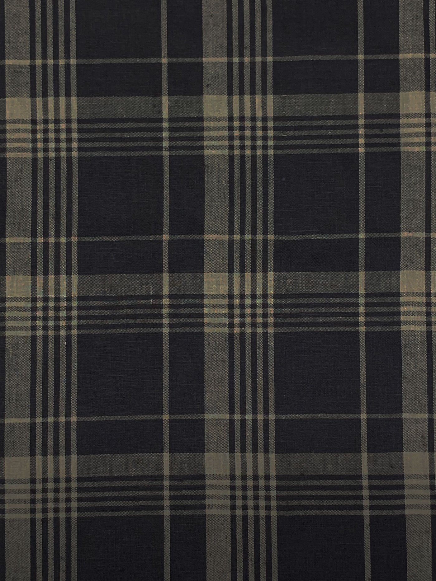 Old Bamboo/Black 100% Linen Yarn-Dyed Plaid Weave Shirt Weight Woven - European Mill - 59W