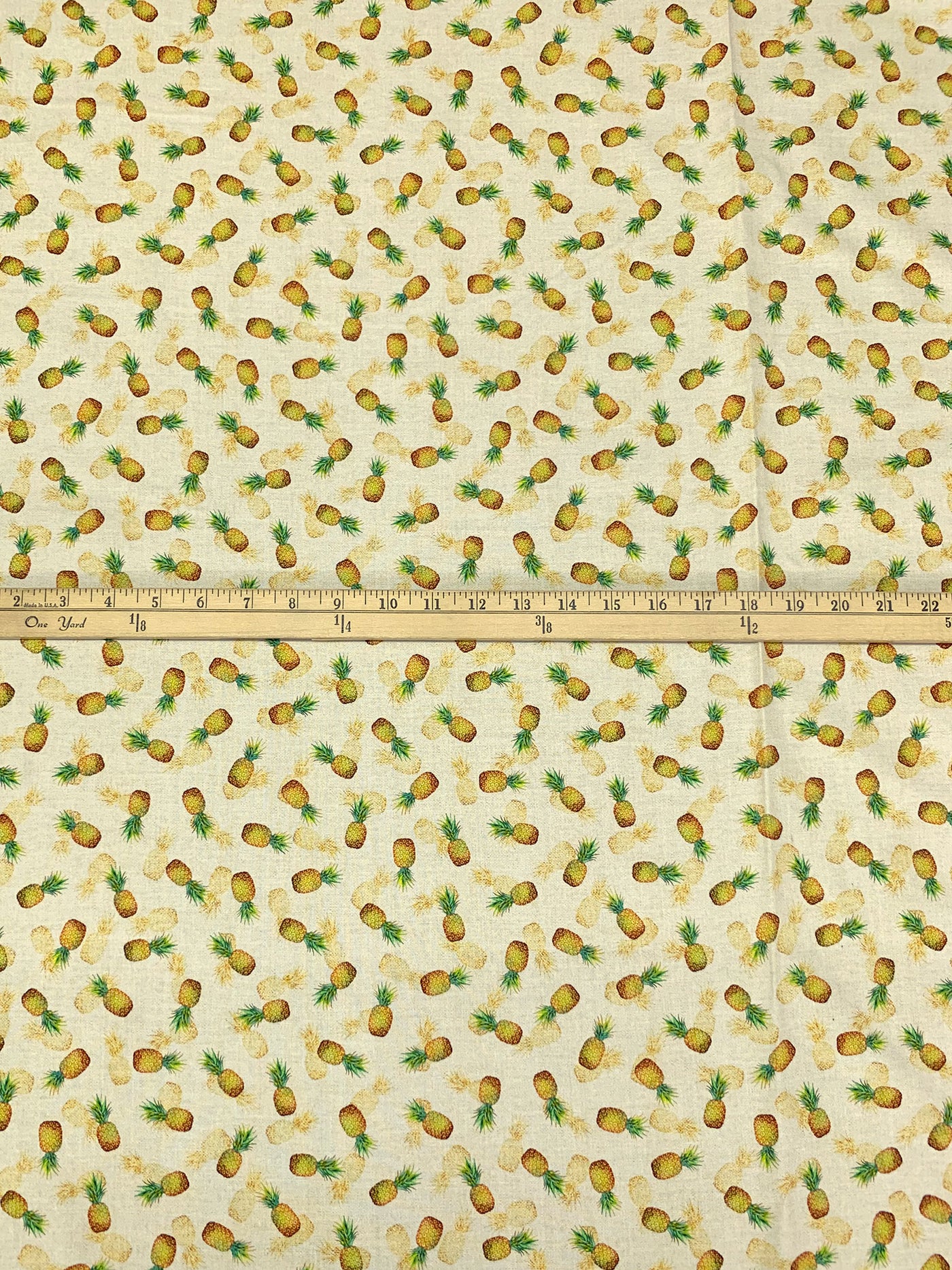 Pale Cream/Sunburst Yellow 100% Cotton "Pineapple" Print Tropical Gardens Aloha Iki - Robert Kaufman - 44W