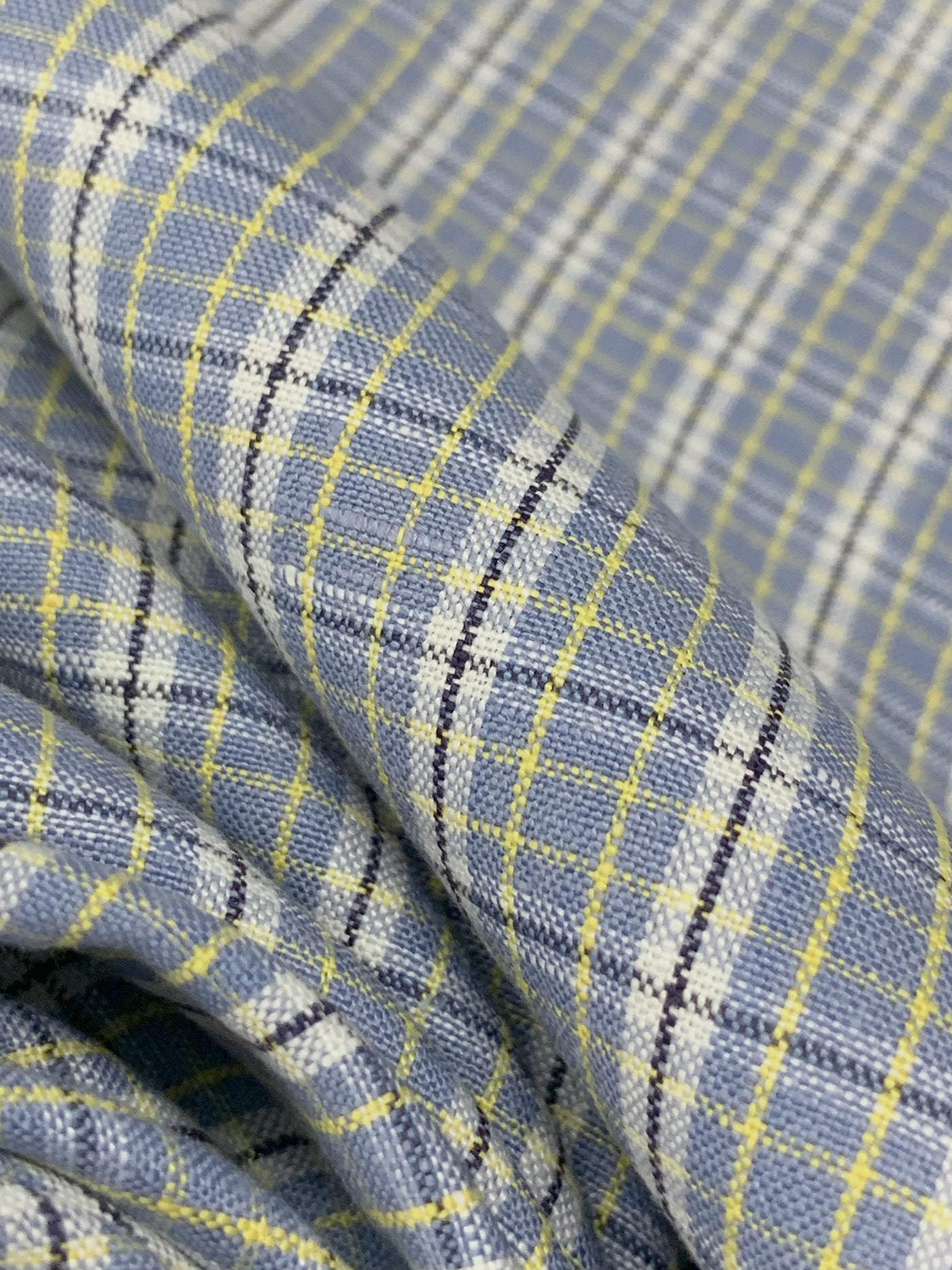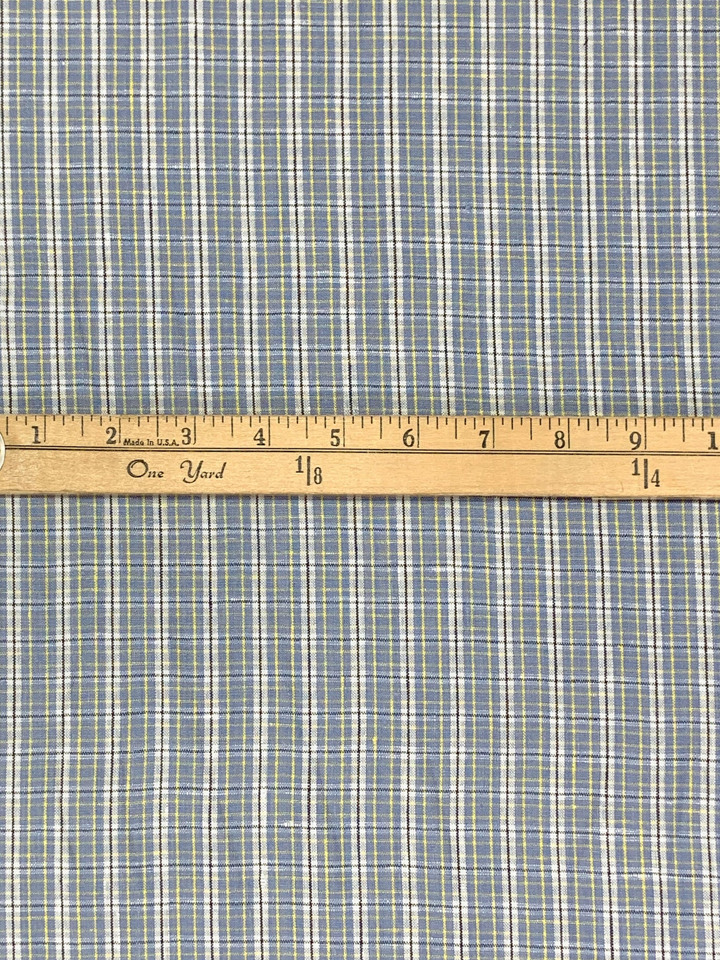 Shadow Blue/Canary/White/Dark Navy 100% Linen Yarn-Dyed Plaid Weave Shirt Weight Woven - European Mill - 58W
