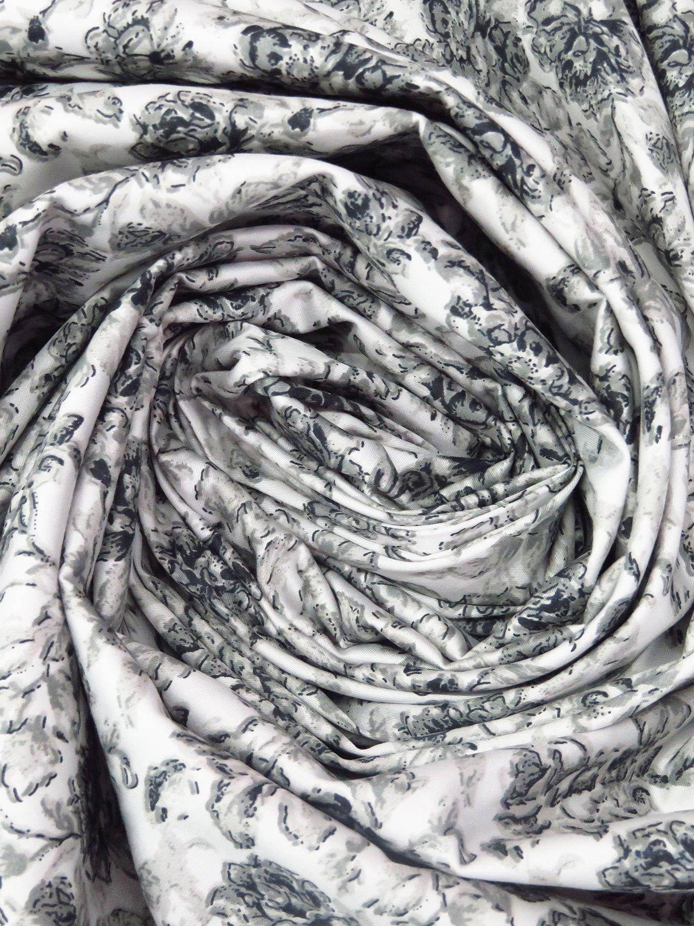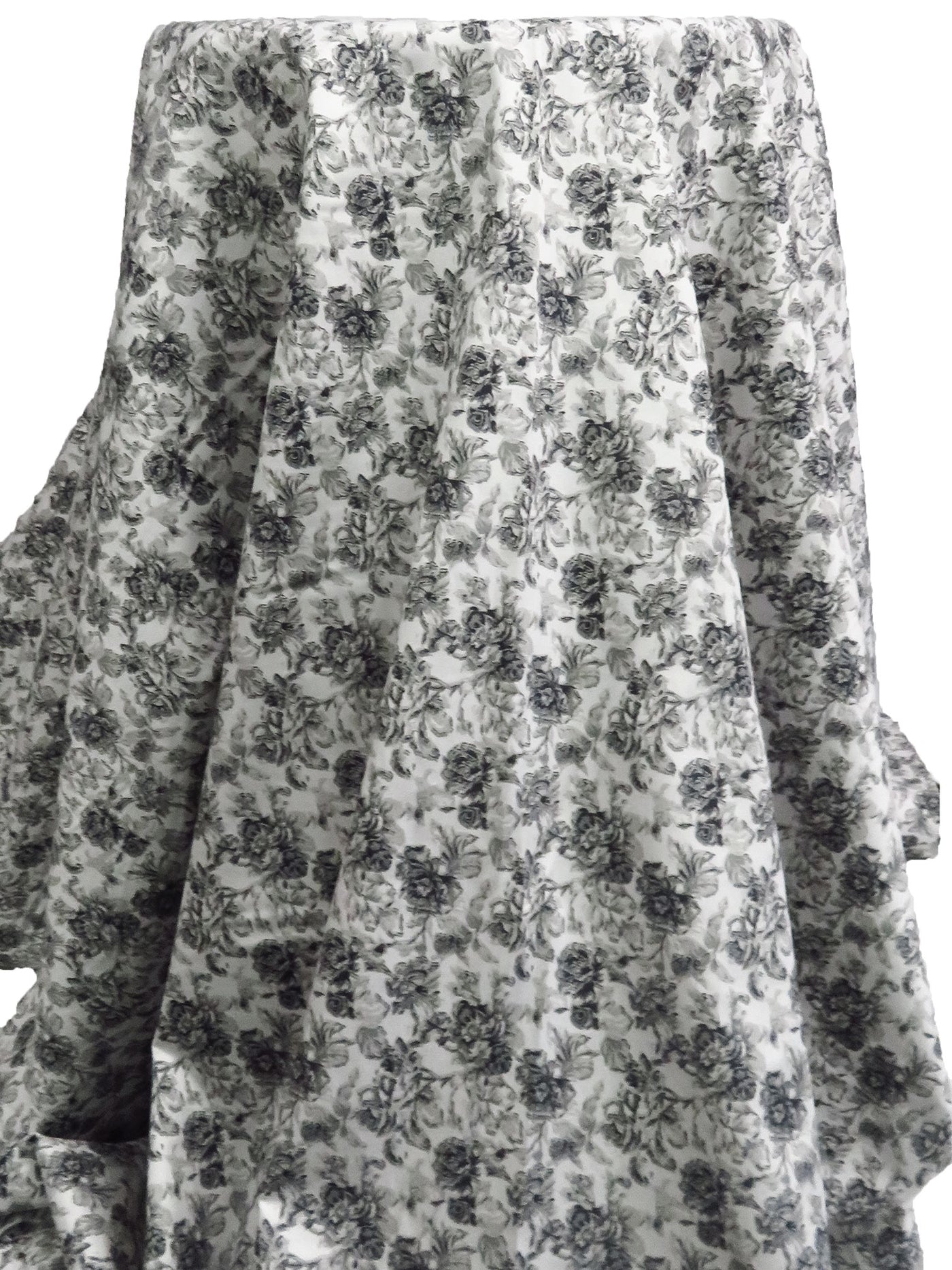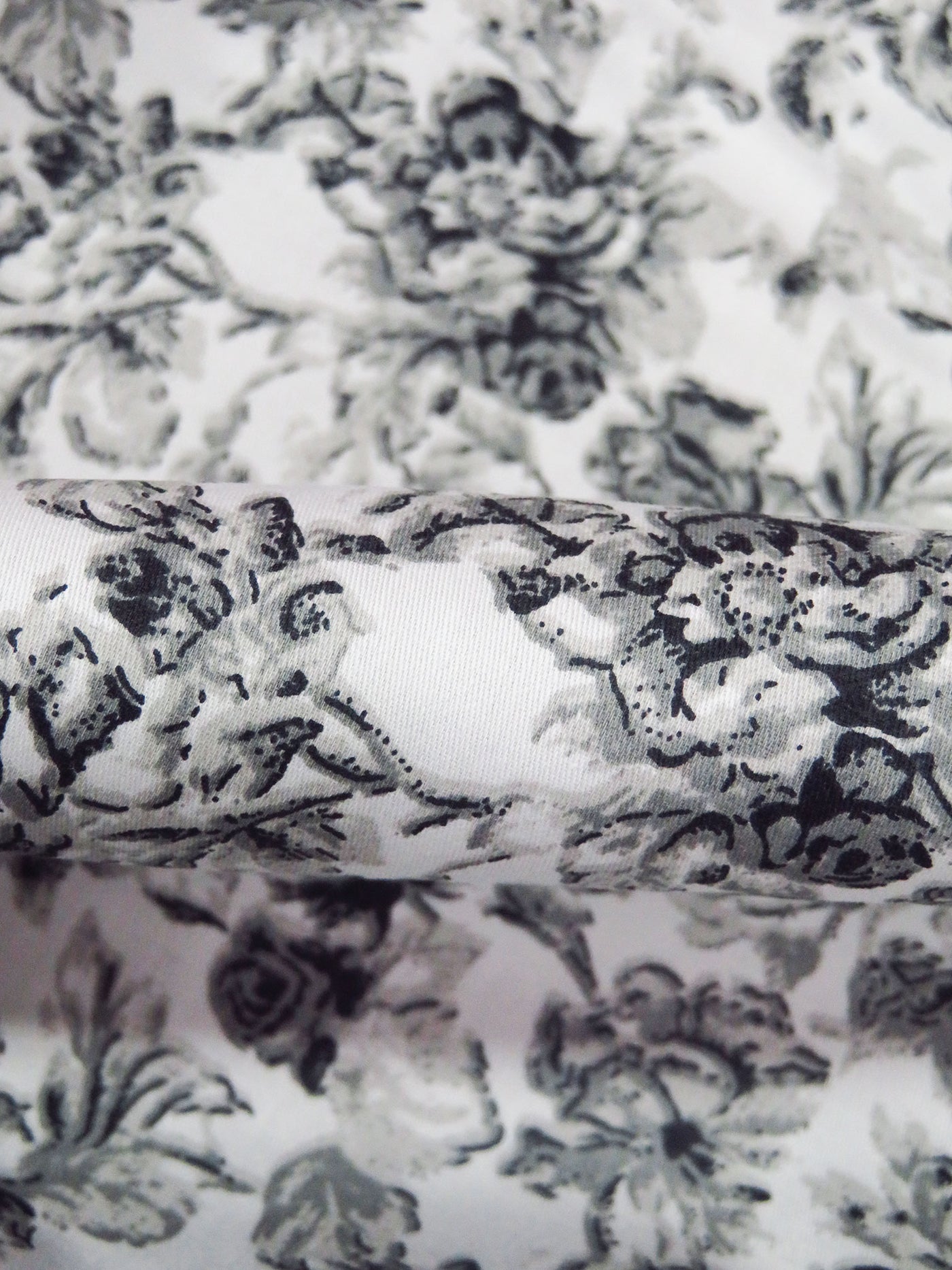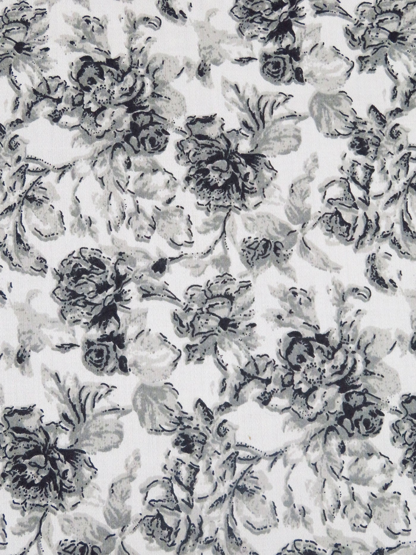 White/Foggy Gray/Matte Black 100% Cotton Floral Sateen Shirting 57W