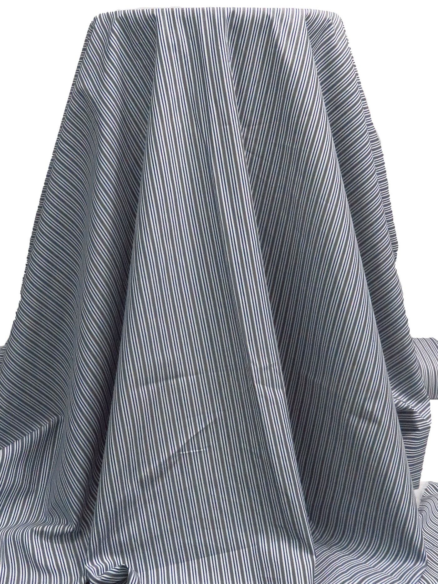 White/Nickel/Midnight Blue 100% Cotton Vertical Stripe Weave Shirting 60W