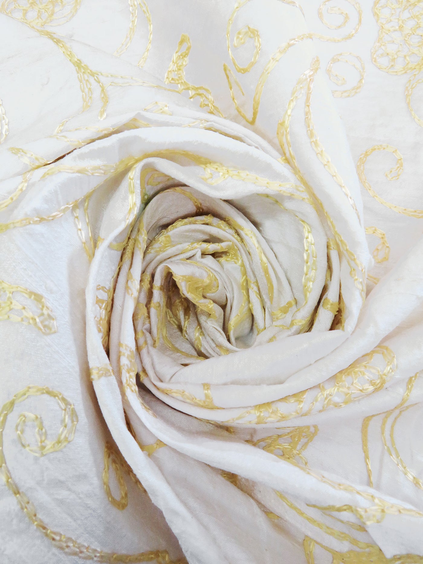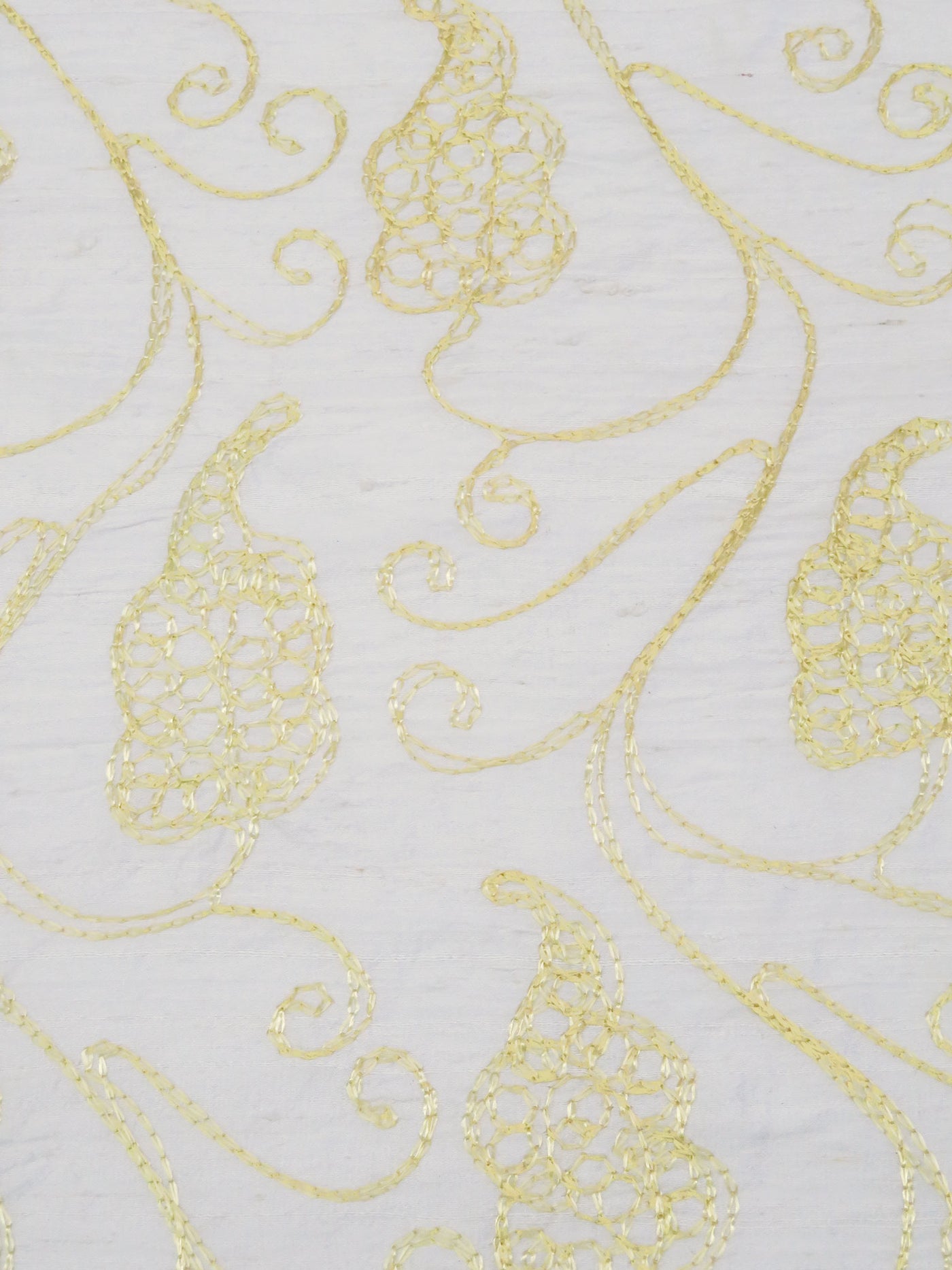 Antique White/Pastel Yellow 100% Silk Leaf Embroidered Dupioni 42W