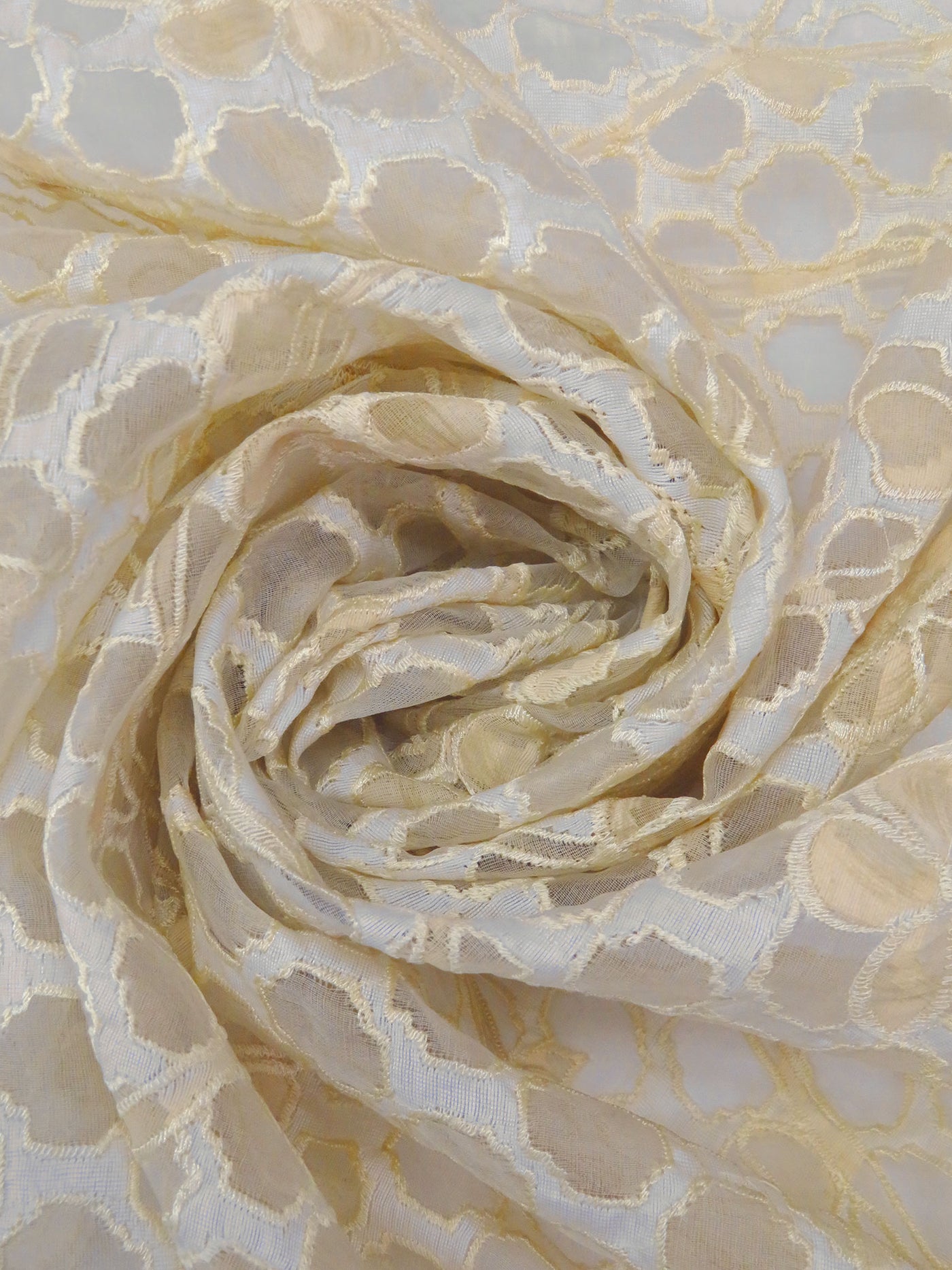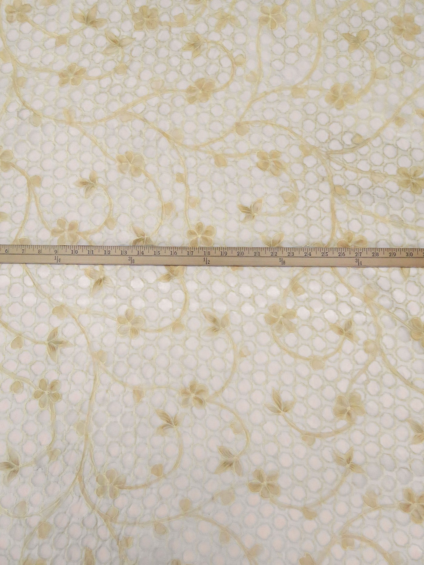 Beige/Cream 100% Silk Embroidered Floral On Geometric Organza 42W