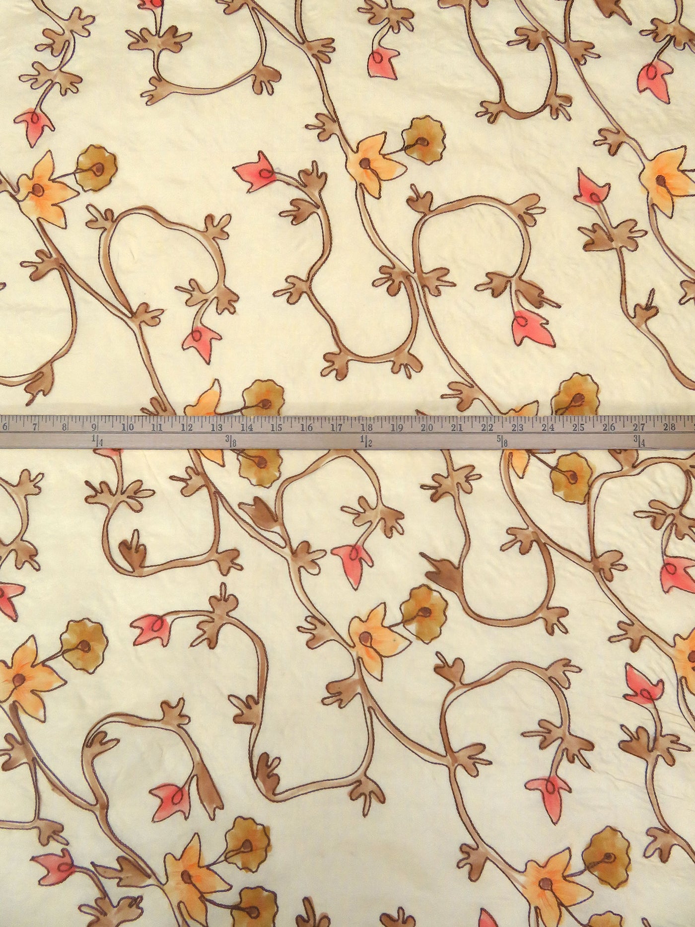Beige/Raw Sienna/Apricot/Multi 100% Silk Embroidered Painterly Floral Vines Organza 42W