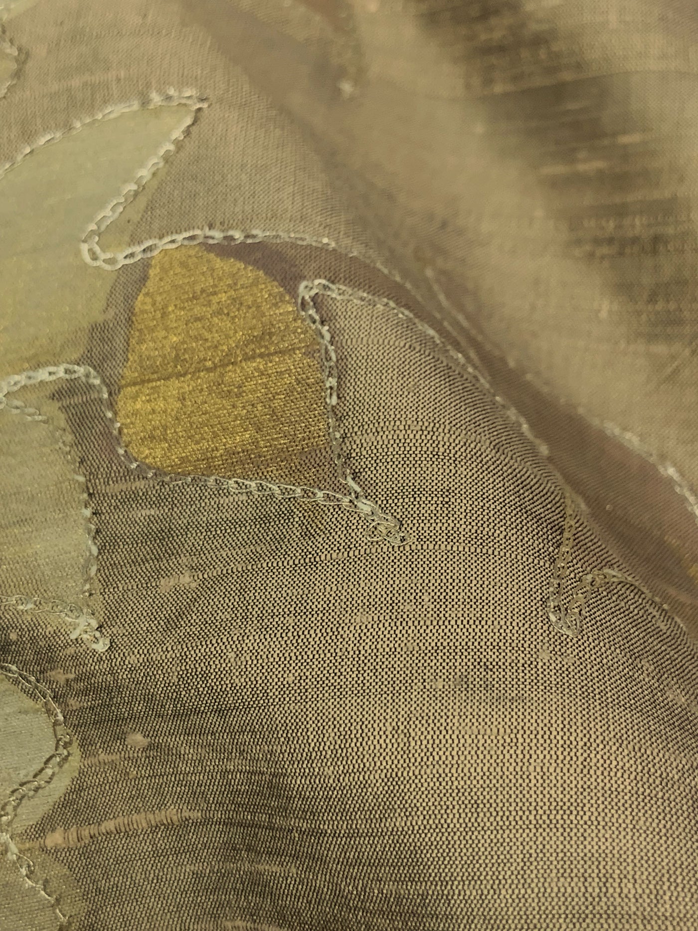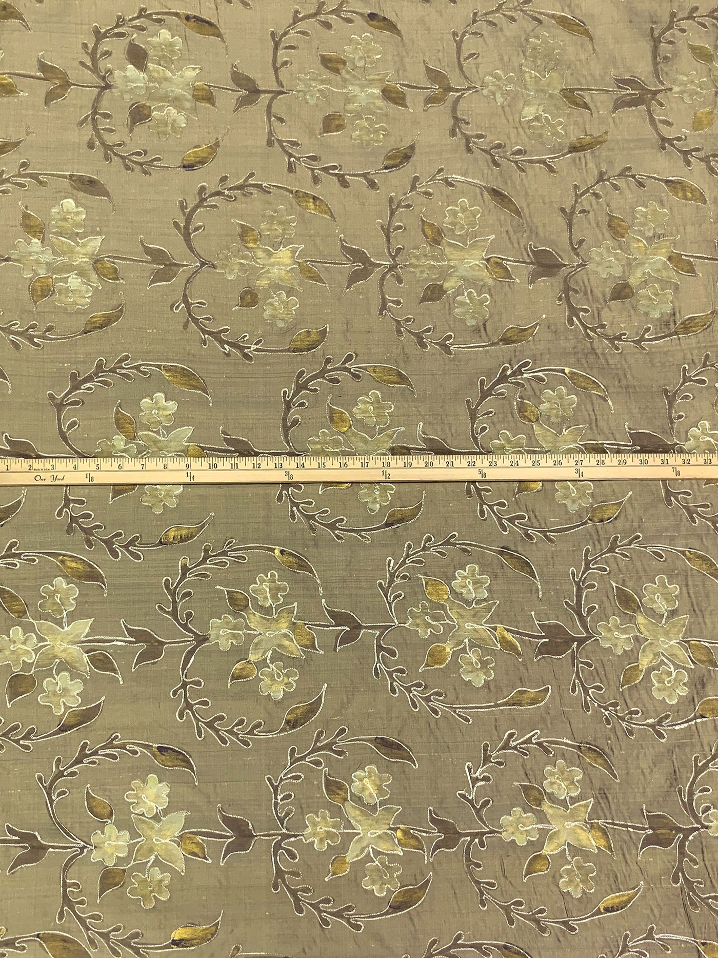 Muted Bronze/Vegas Gold/Metallic Gold 100% Silk Hand-Dyed Leaf Embroidered Dupioni 42W