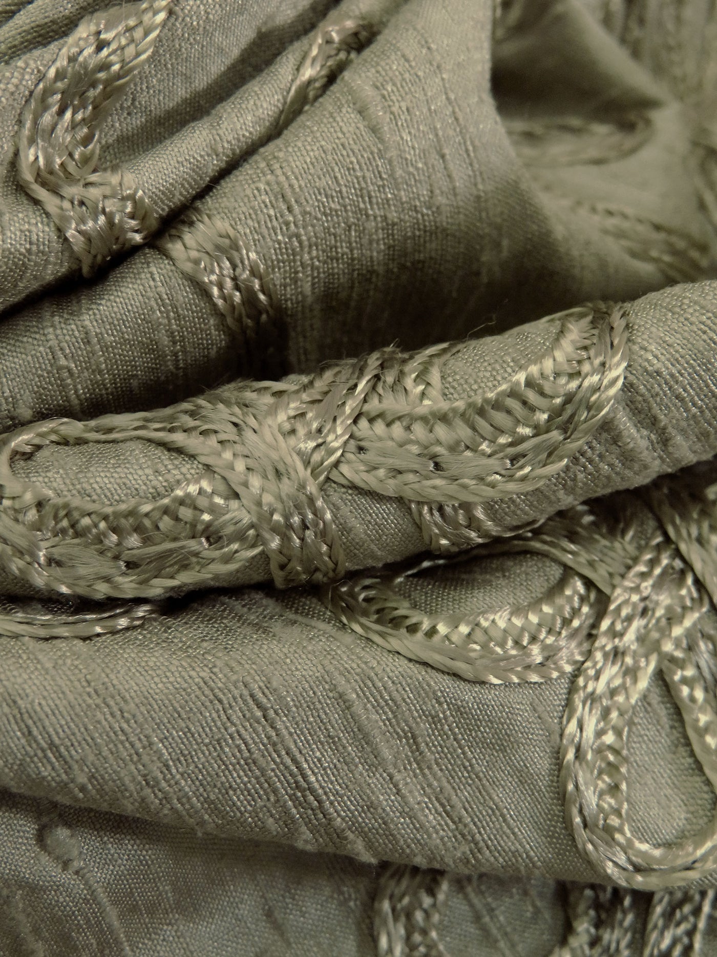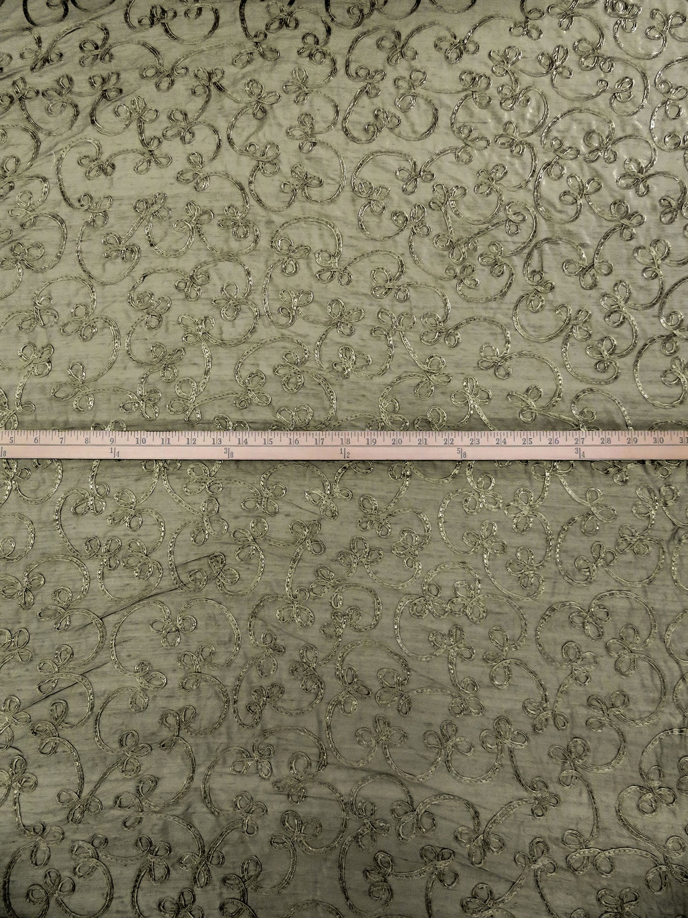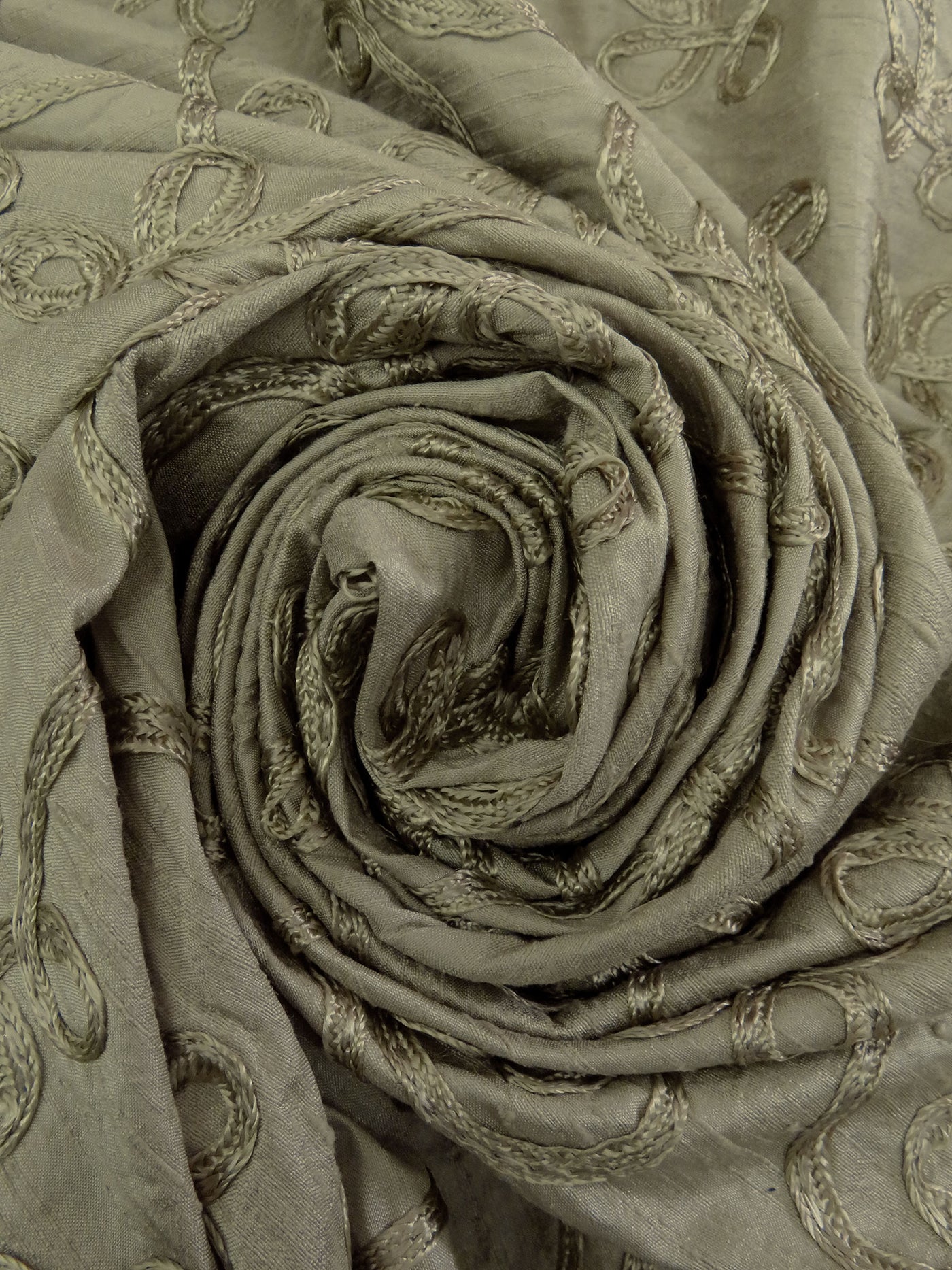 Oregano Spice 100% Silk Loopy Soutache Embroidered Dupioni 42W