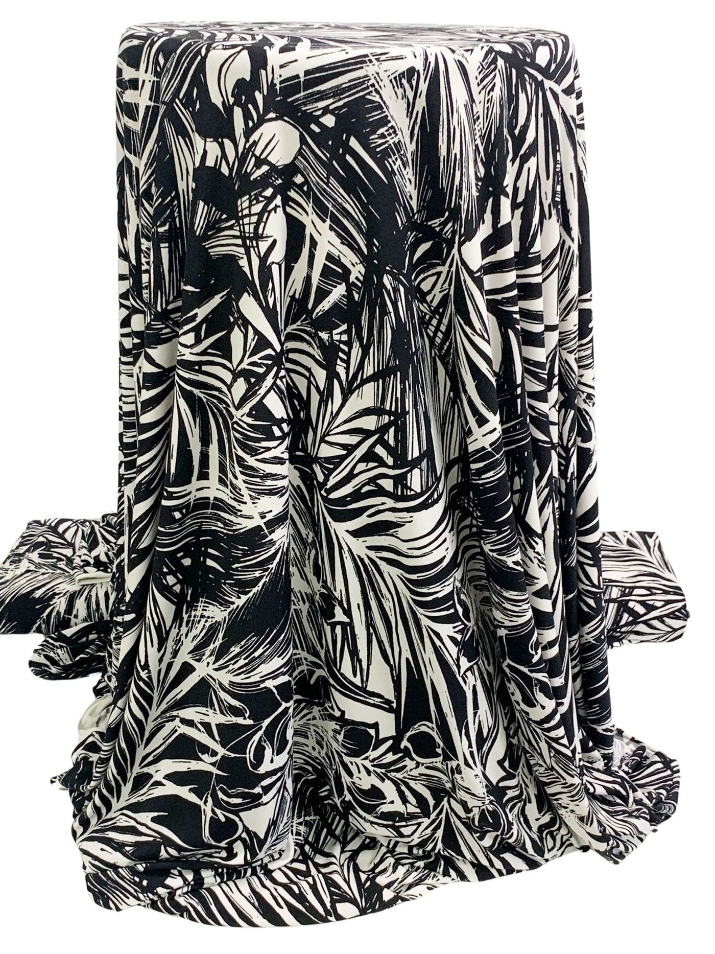 Black/White Polyester/Lycra Large Floral Print ITY Knit 58W
