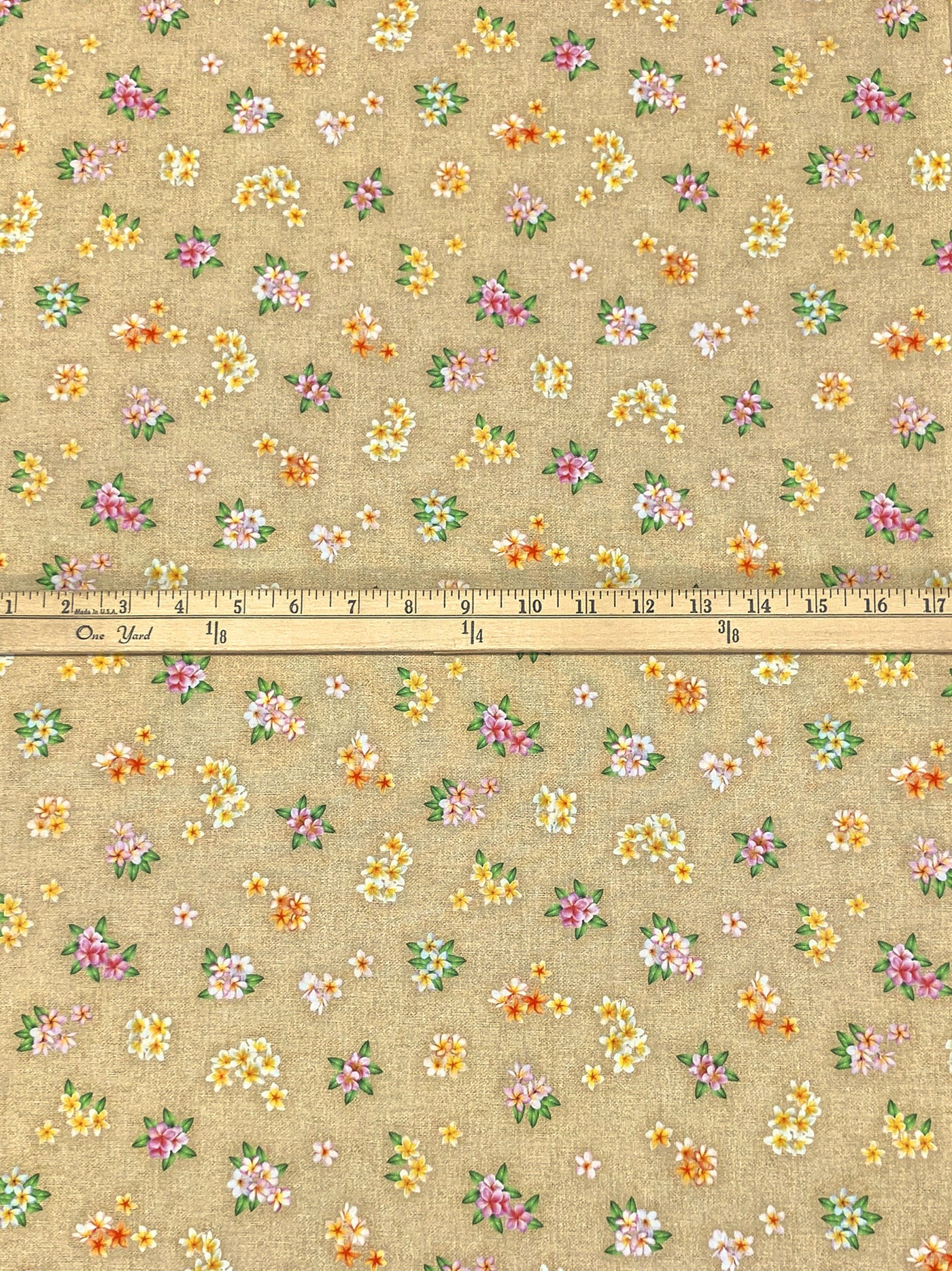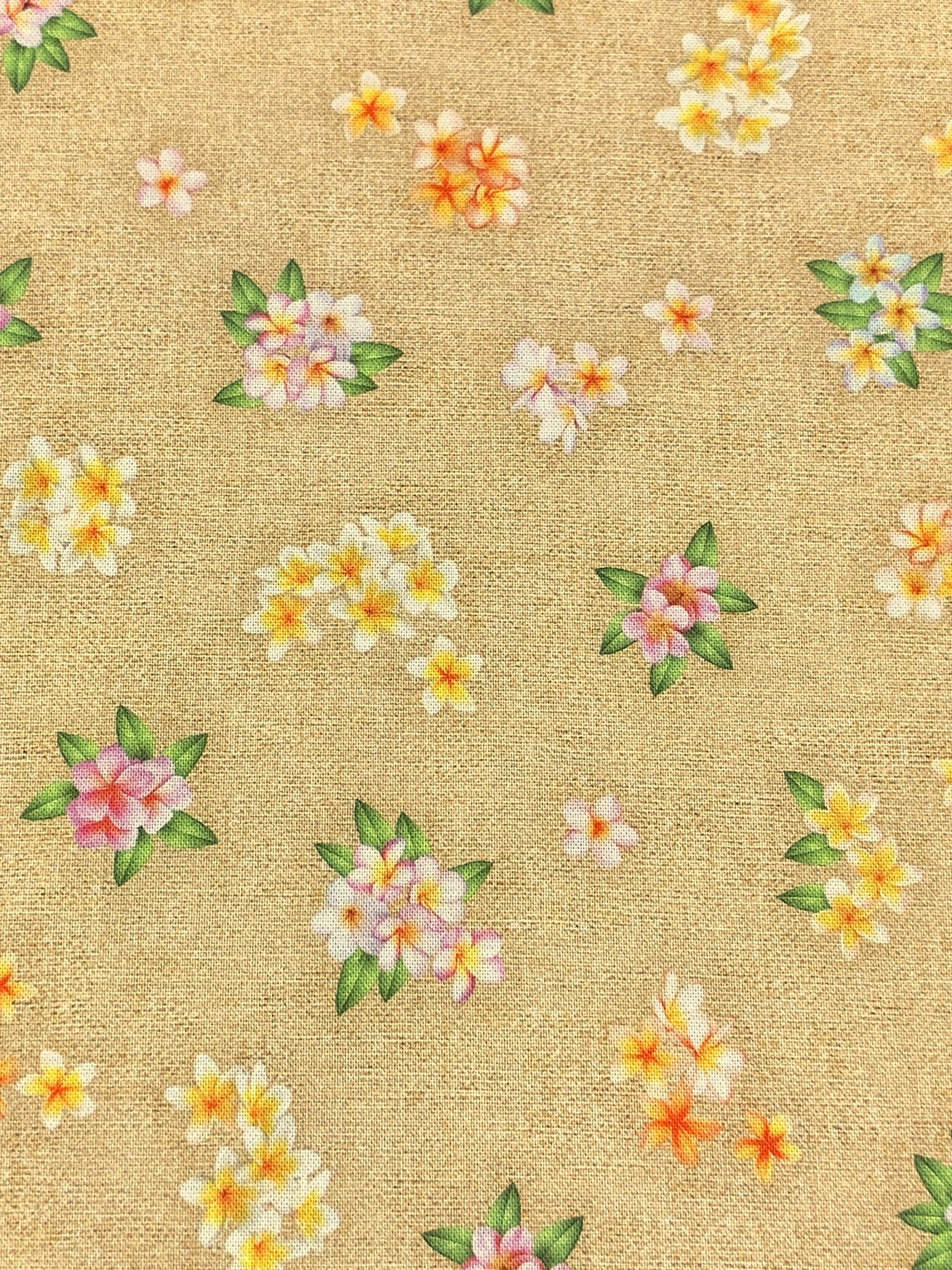 Burlywood/Moss Green/Maize/Multi 100% Cotton "Garden" Print Tropical Gardens Aloha Iki - Robert Kaufman - 44W
