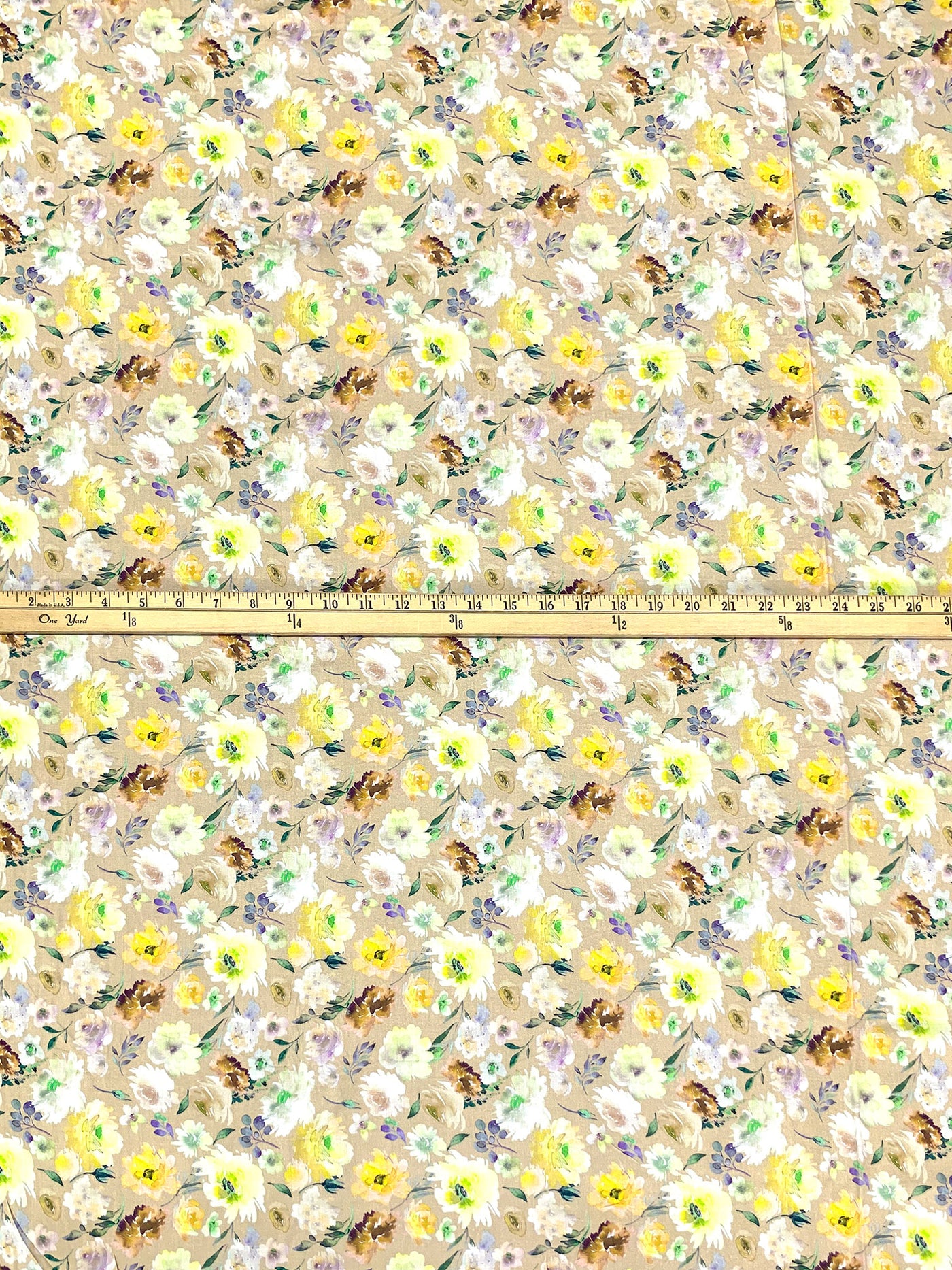 Burlywood/Wisteria/Lemon/Multi 100% Rayon Floral Print Challis 58W