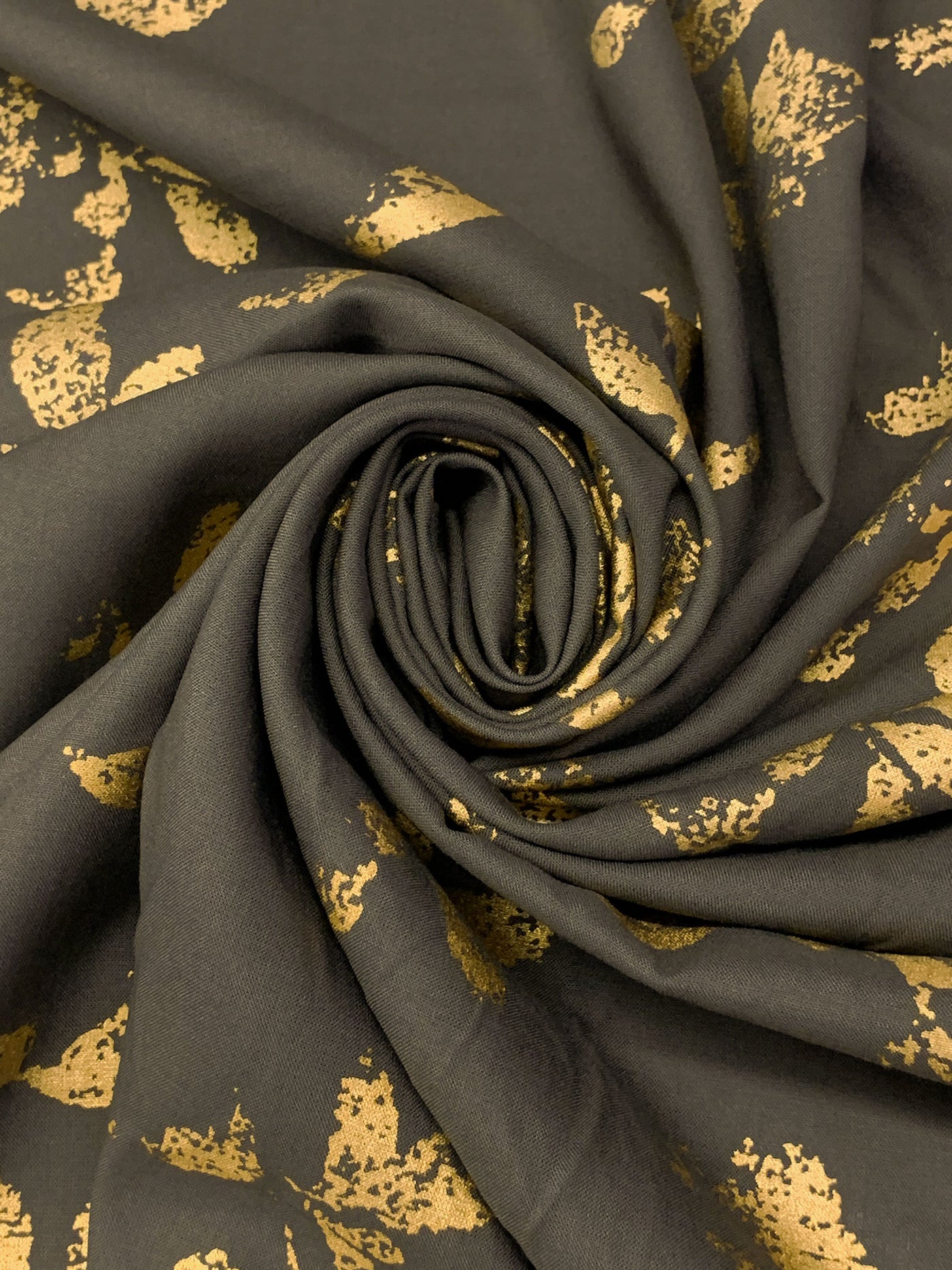 Dark Taupe/Gold 100% Rayon Floral Foil Print Challis 56W