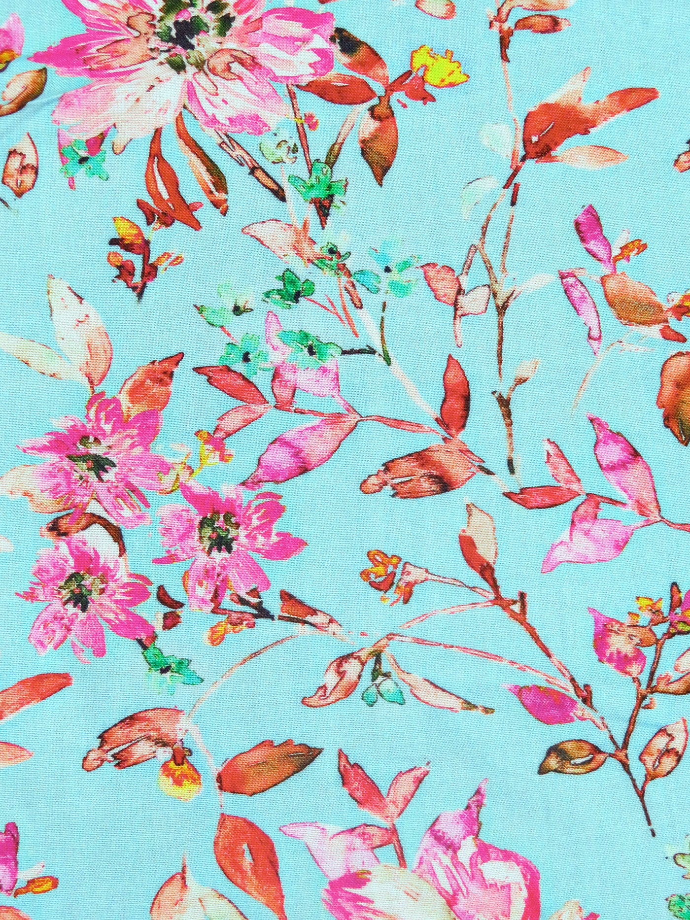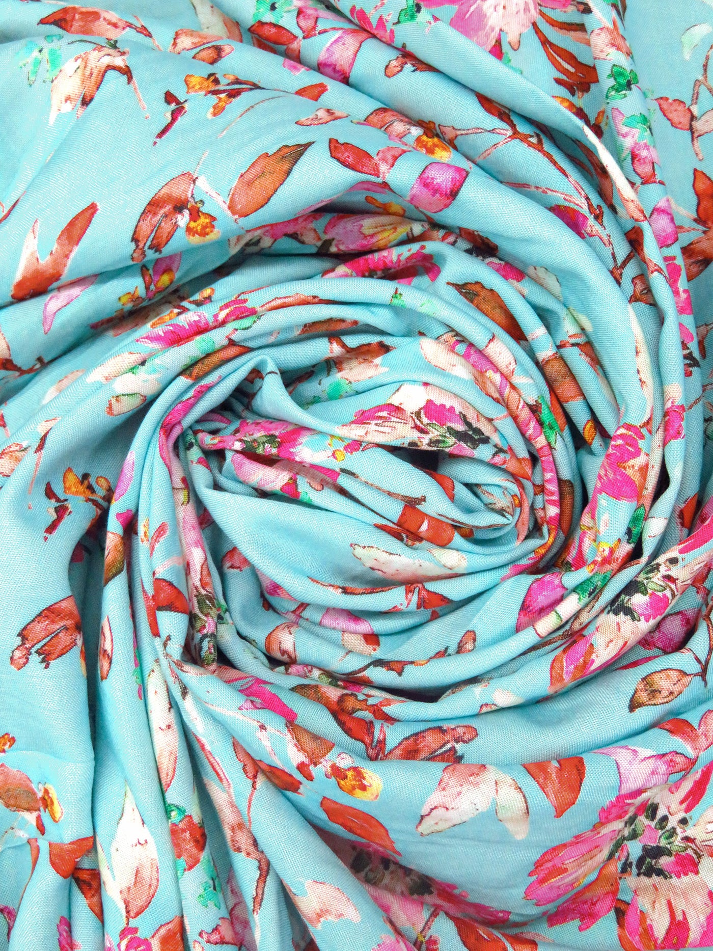 Sky Blue/Cinnabar/Royal Pink/Multi 100% Rayon Flowers and Leaves Print Challis 57W
