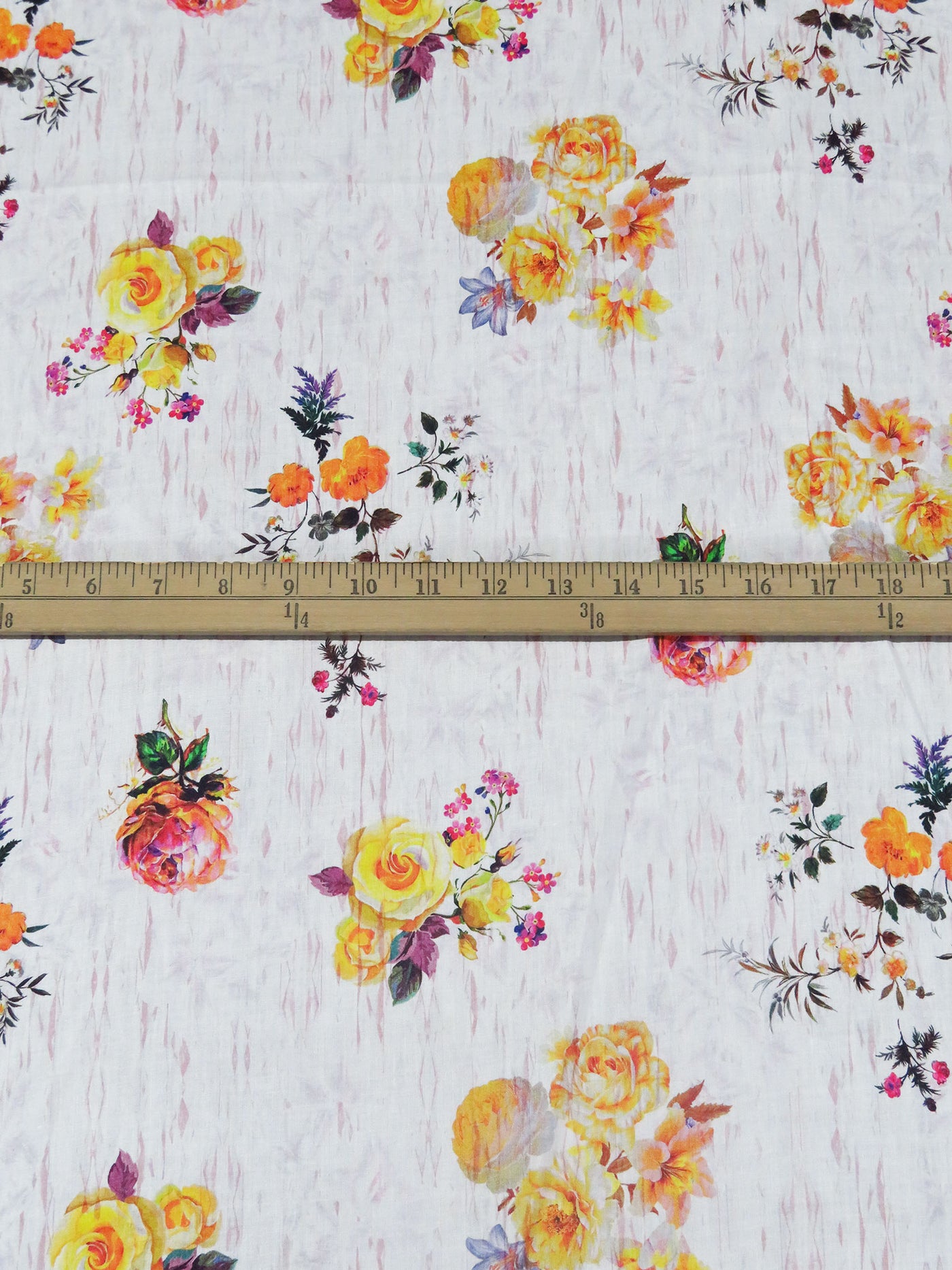 White/Lemon/Pale Chestnut/Multi 100% Rayon Abstract On Floral Print Challis 54W