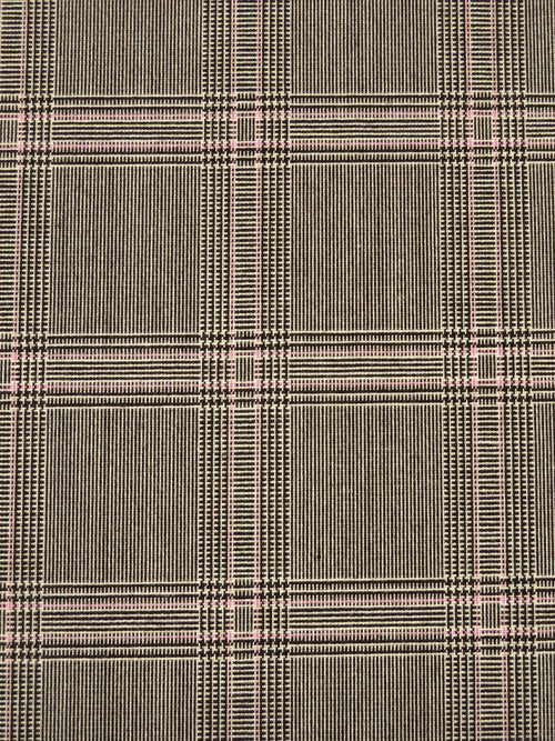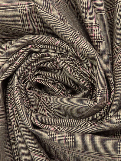 Dark Chocolate/Bisque/Pink Sherbet Polyester/Rayon/Lycra Yarn-Dyed Plaid Weave Stretch Suiting 50W