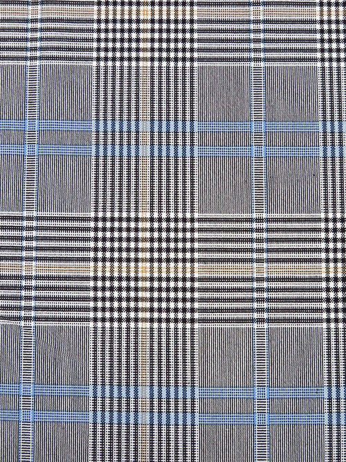 White/Black/Warm Sand/Light Cobalt Blue Polyester/Rayon/Lycra Yarn-Dyed Plaid Weave Stretch Suiting 54W