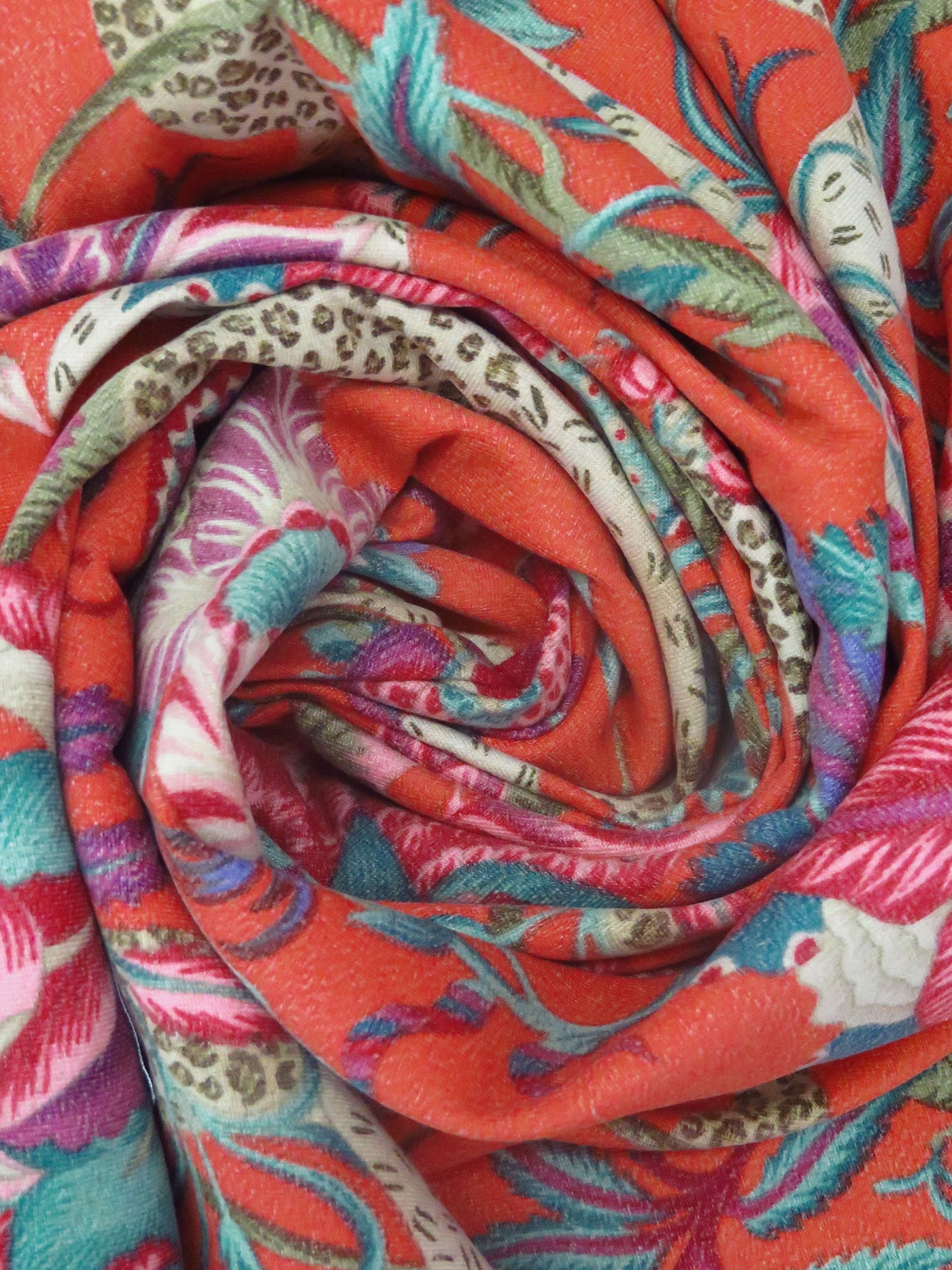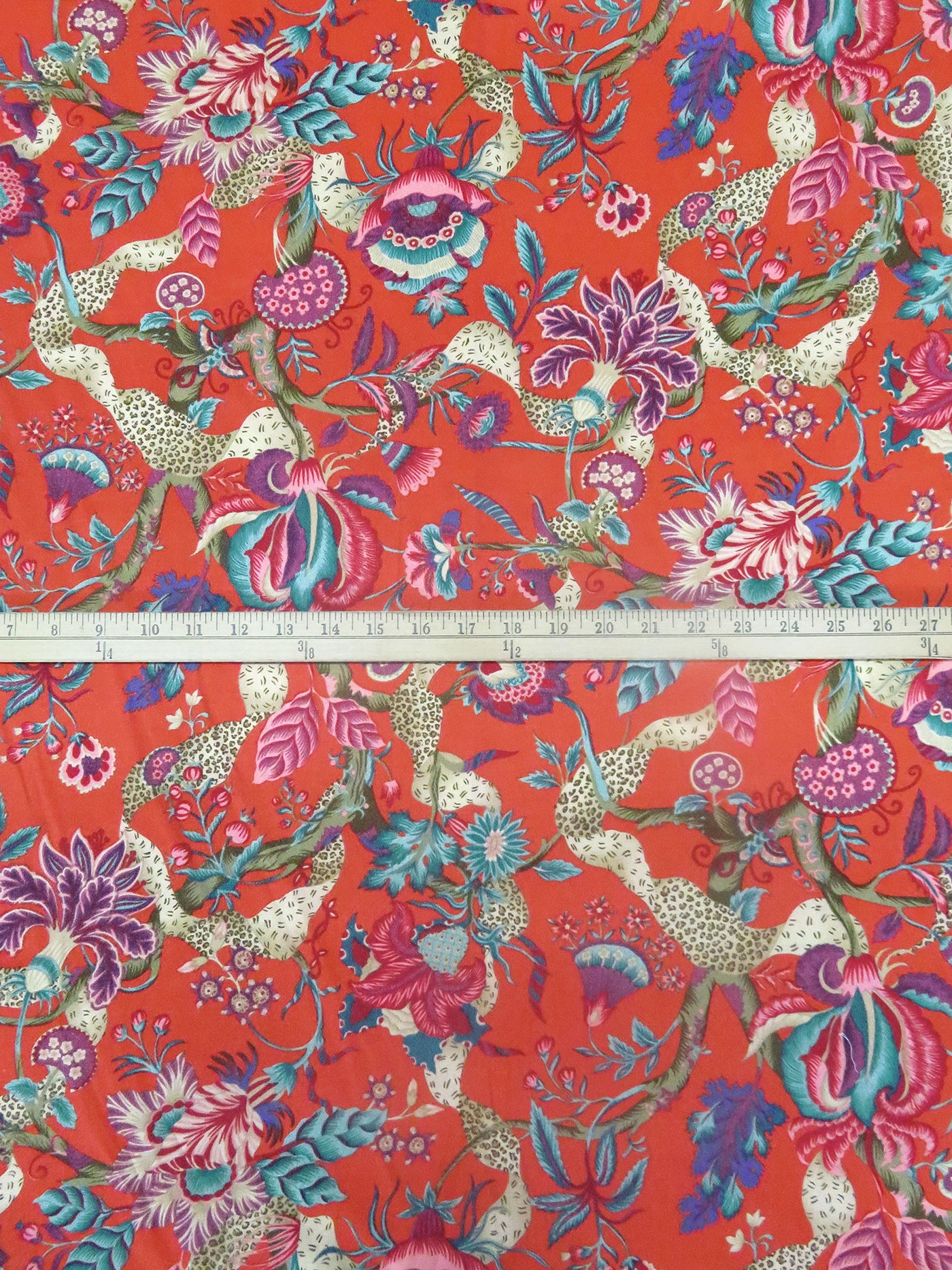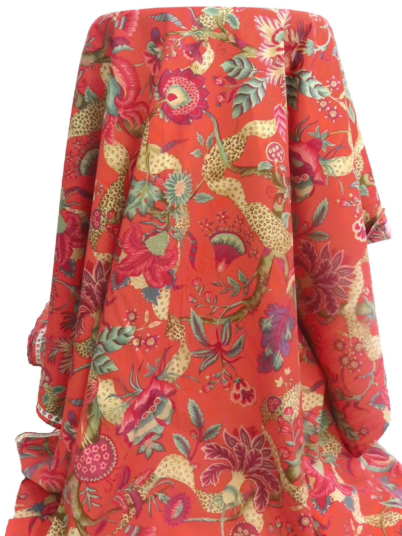 Glazed Persimmon/Melon/Artichoke/Multi 100% Polyester Ornate Floral Print Moleskin Suiting 45W