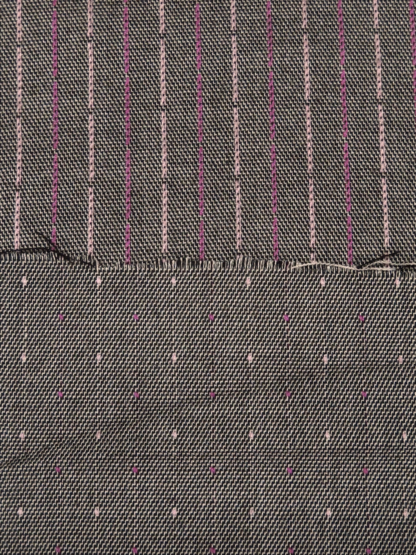 - Additional: Suiting. Soft, Semi-Crisp, Thin Hand. Dot Weave On Face, Dashed Vertical Stripe Weave On Reverse. Slight Crepe Feel. Translucent. Some Applications May Need Lining.