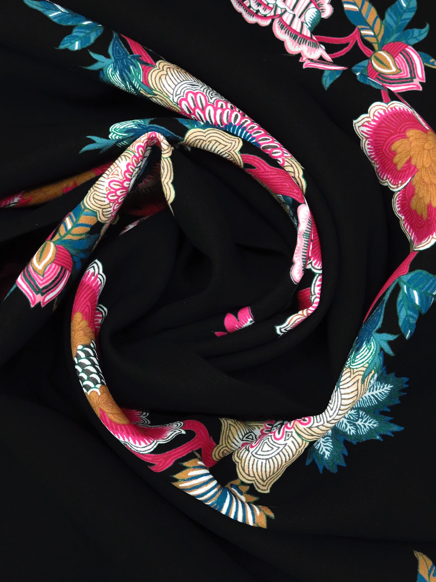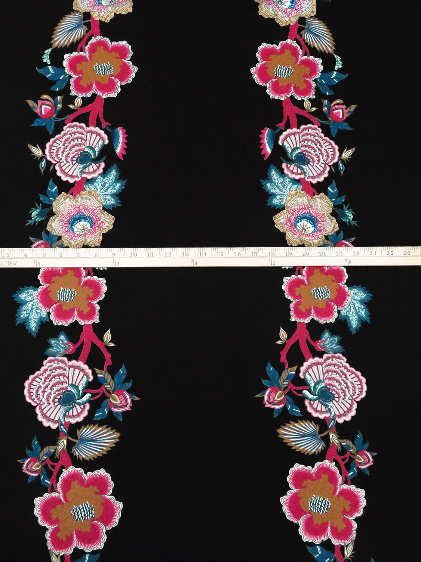 SOLD BY THE PANEL ONLY - Black/Dark Raspberry/Wheat/Multi 100% Rayon Camellia Lotus Floral Trellis Print Suiting - NY Designer - 55W