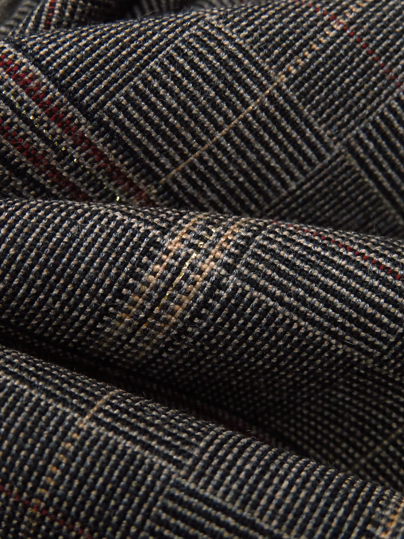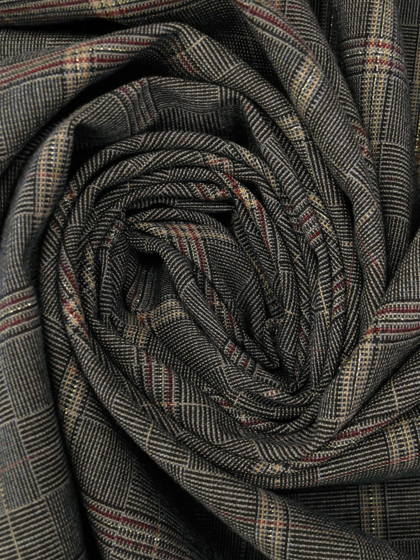 Tan/Maroon/Black/Multi Polyester/Rayon/Lycra Plaid Foil Weave Stretch Suiting 51W